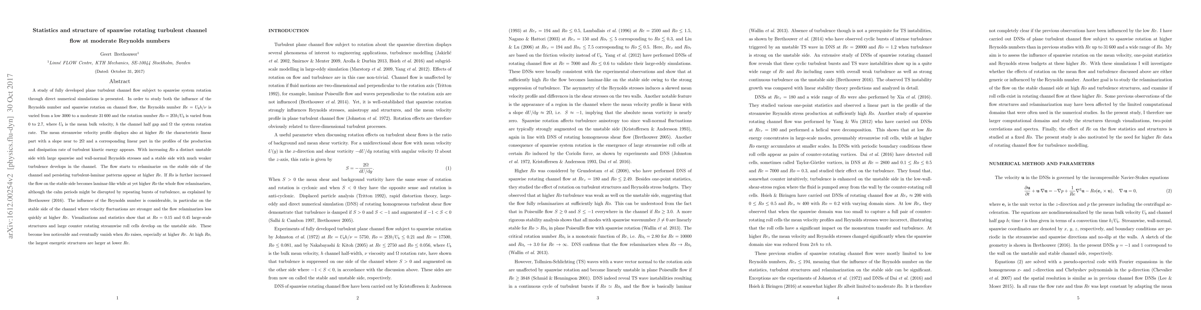 This study explores the effects of spanwise rotation on turbulent channel flow through direct numerical simulations, varying Reynolds and rotation numbers. The results show an unstable side with high turbulence and a stable side where flow relaminarizes, with large-scale structures diminishing as rotation increases. The Reynolds number significantly impacts the stability and relaminarization process on the stable side.