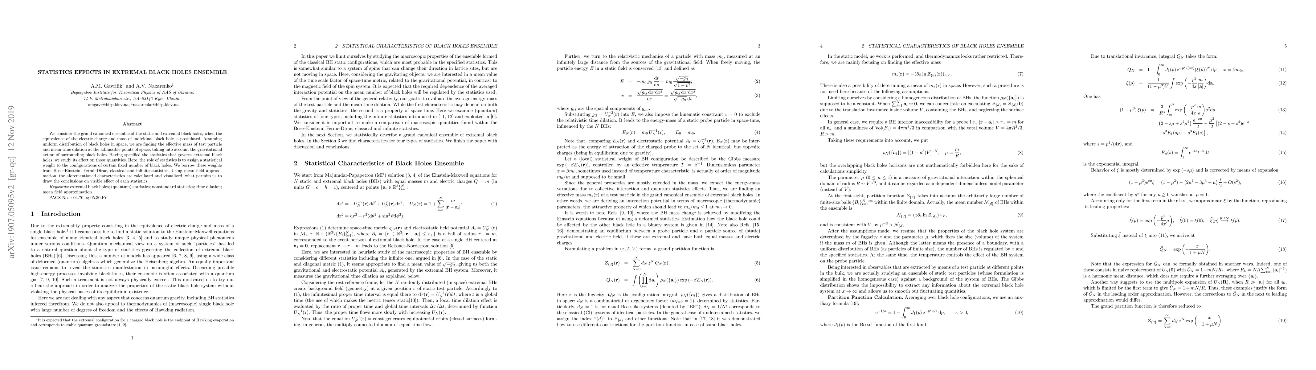 This paper studies the effects of statistics on extremal black holes in a grand canonical ensemble, exploring how different statistical weights affect test particle mass and time dilation.