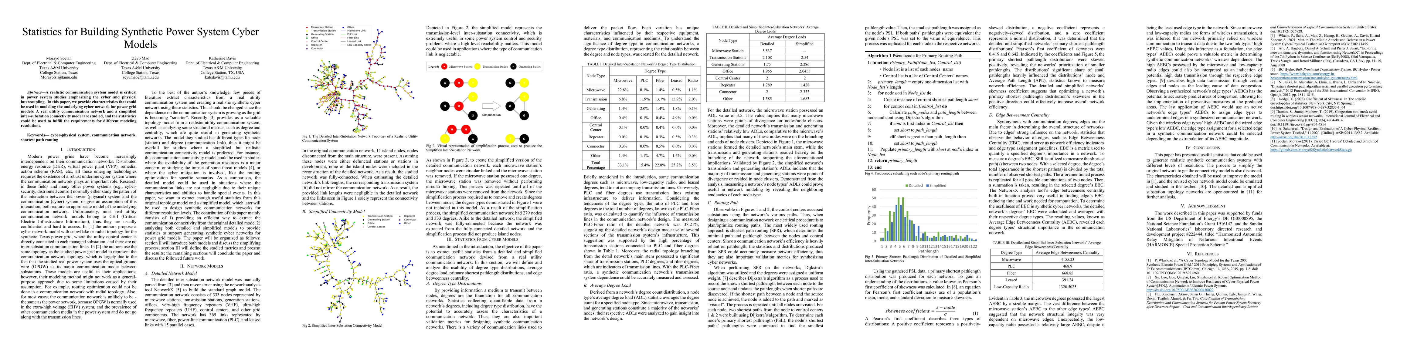 This paper presents statistics for creating synthetic models of power system cyber networks, using real utility communication networks as a basis. It explores both detailed and simplified models for various study resolutions, emphasizing the importance of realistic cyber system representation in power grid research.