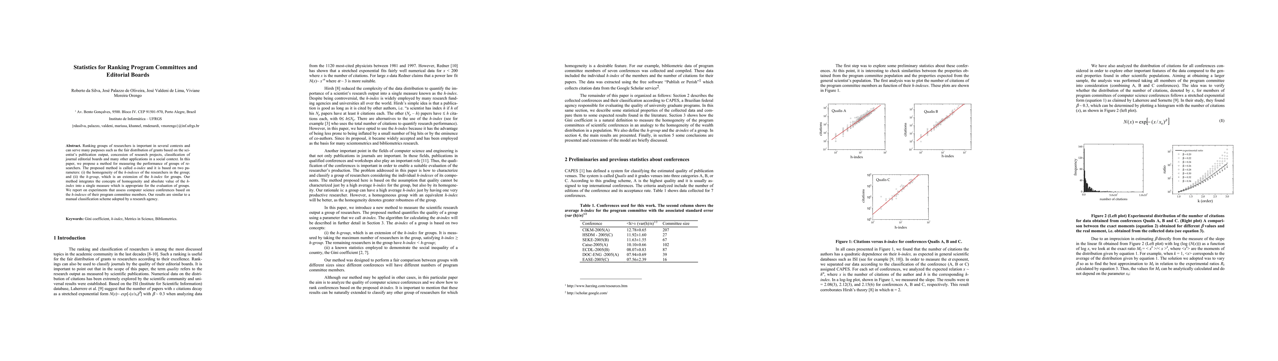 This paper proposes the alpha-index method for ranking groups of researchers, integrating the homogeneity of individual h-indexes and an extended h-group index into a single performance measure. Experiments on computer science conferences show results comparable to a manual classification scheme.