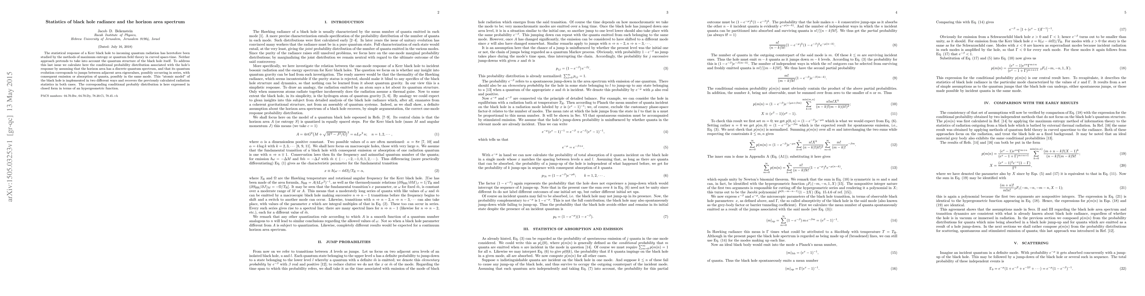 The statistical response of a Kerr black hole to incoming quantum radiation has heretofore been studied by the methods of maximum entropy or quantum field theory in curved spacetime. Neither approach pretends to take into account the quantum structure of the black hole itself. To address this last issue we calculate here the conditional probability distribution associated with the hole's response by assuming that the horizon area has a discrete quantum spectrum, and that its quantum evolution corresponds to jumps between adjacent area eigenvalues, possibly occurring in series, with consequent emission or absorption of quanta, possibly in the same mode. This "atomic" model of the black hole is implemented in two different ways and recovers the previously calculated radiation statistics in both cases. The corresponding conditional probably distribution is here expressed in closed form in terms of an hypergeometric function.