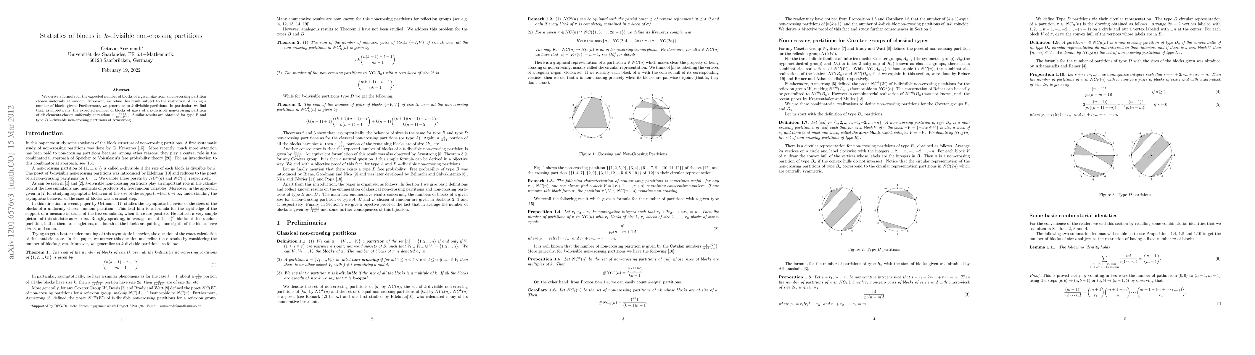 This paper derives a formula for the expected number of blocks of a given size in uniformly random non-crossing partitions, refining it under block count restrictions and generalizing to k-divisible partitions, showing that the expected number of size t blocks of k-divisible partitions asymptotically follows a specific formula. Similar results are extended to type B and type D partitions.
