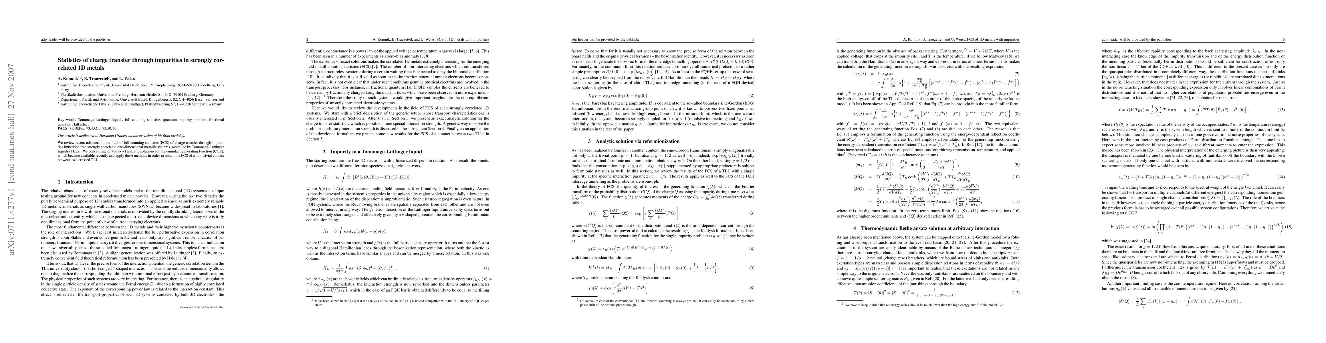 This paper reviews recent advances in full counting statistics of charge transfer through impurities in 1D strongly correlated metals, modeled by Tomonaga-Luttinger liquids. It focuses on exact analytic solutions for the cumulant generating function and applies these to study the statistics of charge transfer between two intersecting TLLs.
