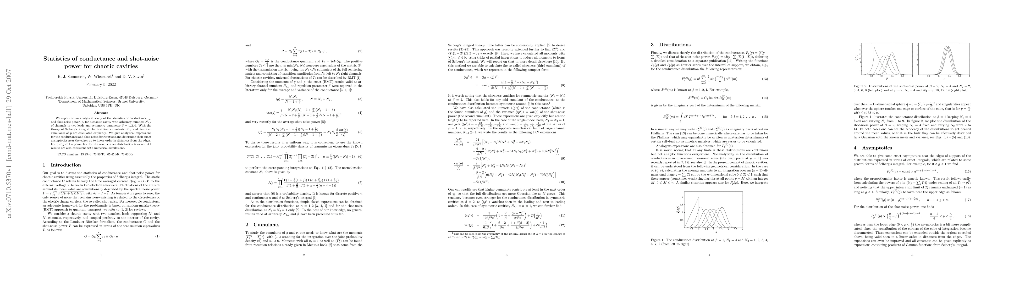 This paper analytically studies the statistics of conductance and shot-noise power in chaotic cavities with varying channel numbers and symmetry parameters. It derives expressions for the conductance and shot-noise distributions and their asymptotic behaviors, confirming the results with numerical simulations.