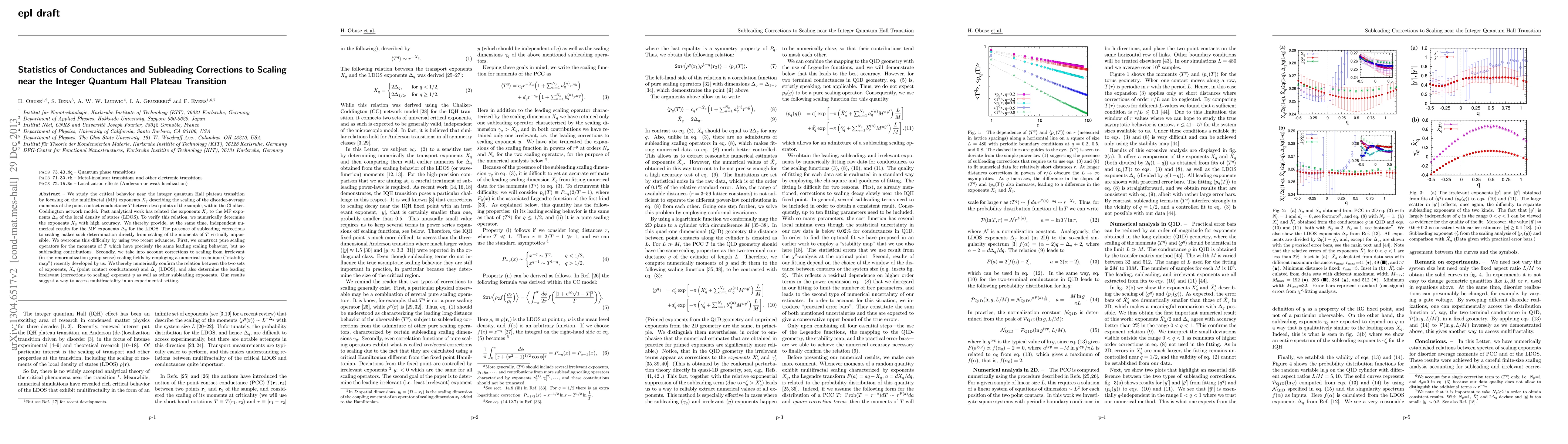 This paper investigates the critical behavior near the integer quantum Hall plateau transition, focusing on the multifractal exponents $X_q$ related to the scaling of conductance moments. It confirms the relation between $X_q$ and the local density of states' multifractal exponents $\Delta_q$ using advanced numerical techniques, including pure scaling operators and a "stability map" to account for subleading corrections to scaling.