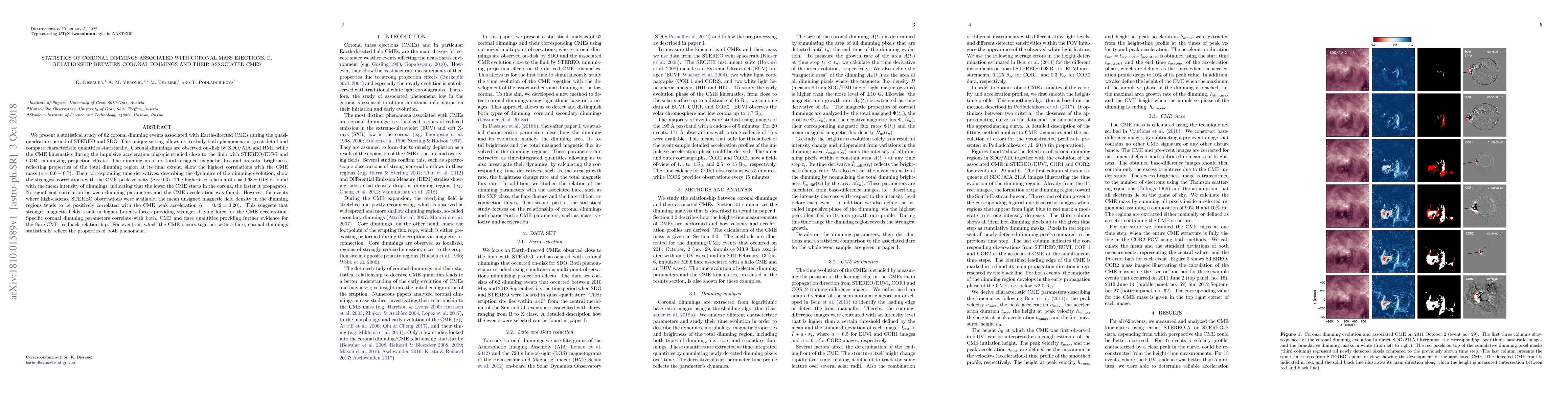 This study statistically analyzes 62 coronal dimming events linked to Earth-directed CMEs, finding strong correlations between dimming area, magnetic flux, and brightness with CME mass, and between dimming dynamics and CME peak velocity. The research suggests a relationship between magnetic field density in dimming regions and CME acceleration, indicating a flare-CME feedback mechanism.