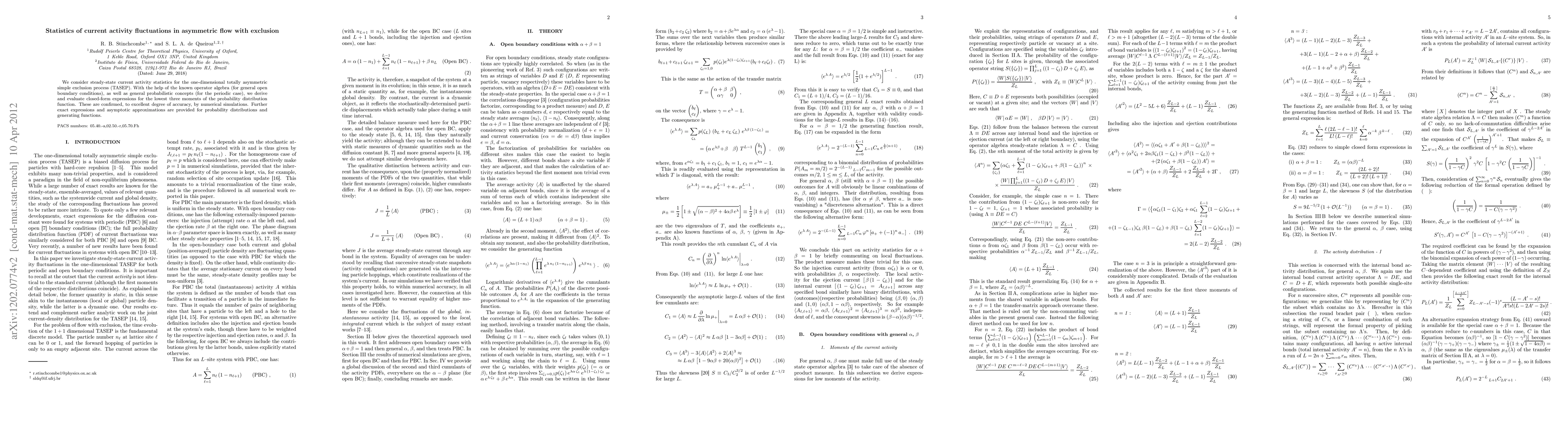 We consider steady-state current activity statistics for the one-dimensional totally asymmetric simple exclusion process (TASEP). With the help of the known operator algebra (for general open boundary conditions), as well as general probabilistic concepts (for the periodic case), we derive and evaluate closed-form expressions for the lowest three moments of the probability distribution function. These are confirmed, to excellent degree of accuracy, by numerical simulations. Further exact expressions and asymptotic approximations are provided for probability distributions and generating functions.