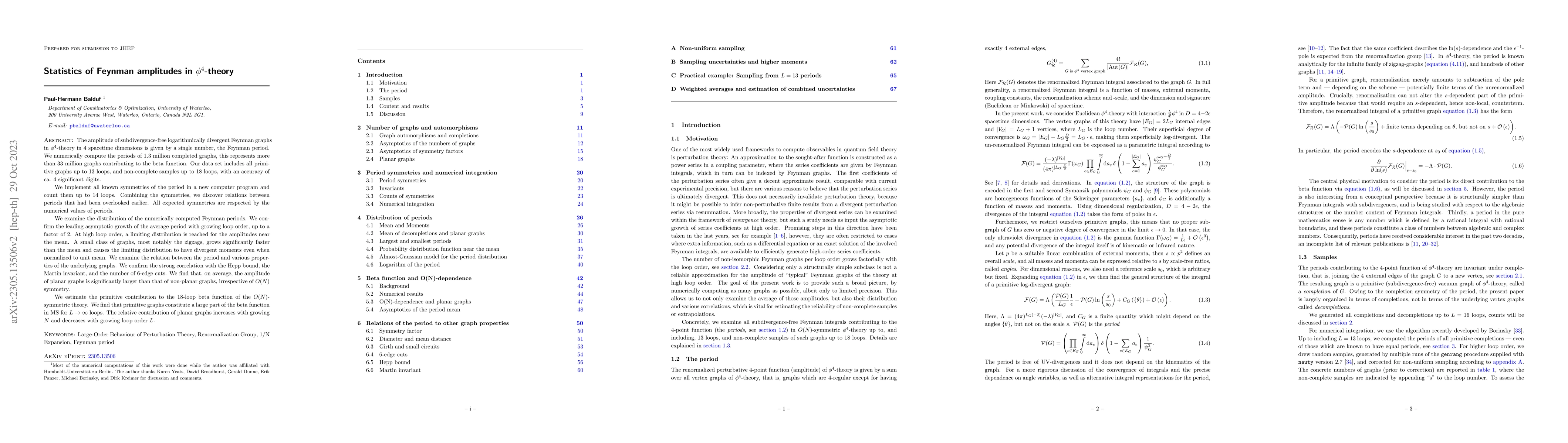 This paper numerically computes the Feynman periods for a vast number of $\phi^4$-theory graphs, discovering new symmetries and relations between periods. It confirms the asymptotic growth of average periods and identifies a small class of faster-growing graphs, particularly zigzags, which affect the distribution. The study also shows that planar graphs tend to have larger amplitudes and examines the contribution of primitive graphs to the beta function, noting the significance of planar contributions in high-loop orders.