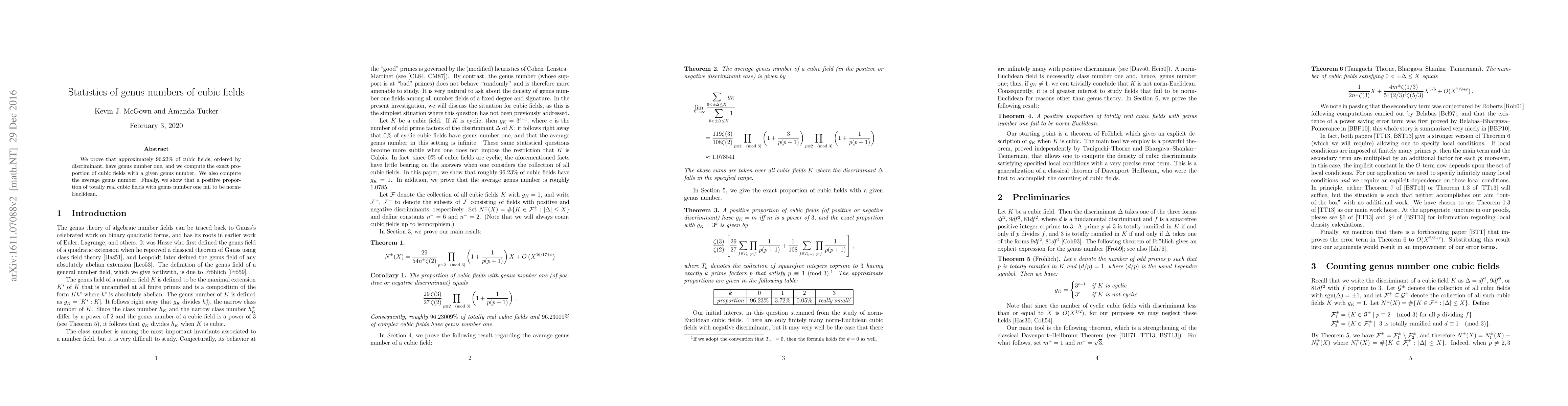 Summary: This paper demonstrates that about 96.23% of cubic fields have genus number one, calculates the precise proportions for different genus numbers, and finds the average genus number. It also reveals that some totally real cubic fields of genus one are not norm-Euclidean.