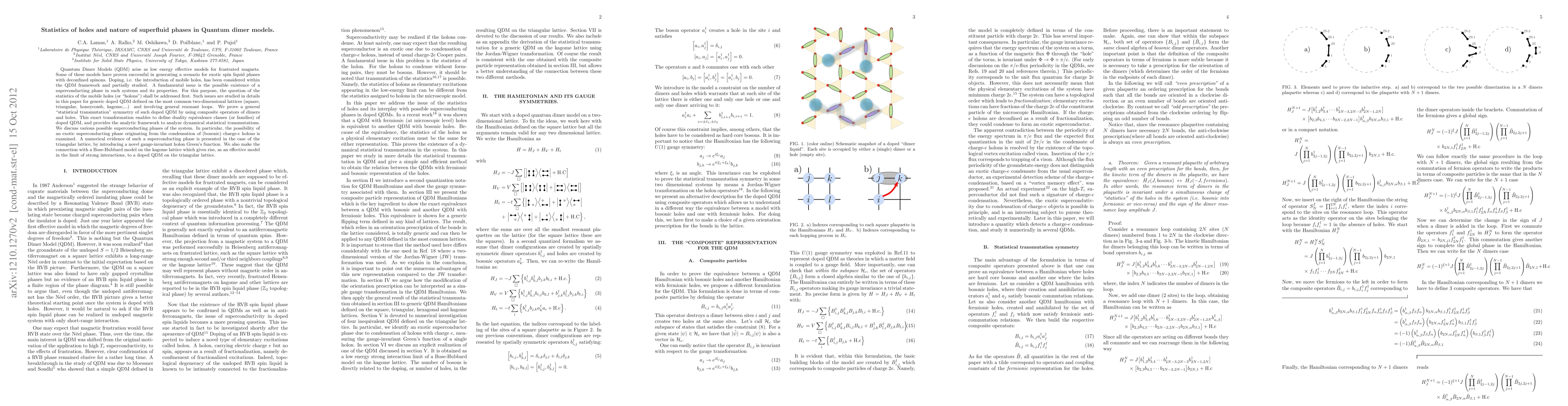 This paper investigates the statistics of mobile holes in doped Quantum Dimer Models (QDM) on various lattices and explores potential superfluid phases. It establishes a "statistical transmutation" symmetry and discusses superconducting phases, particularly an exotic one from holon condensation, evidenced numerically on the triangular lattice.