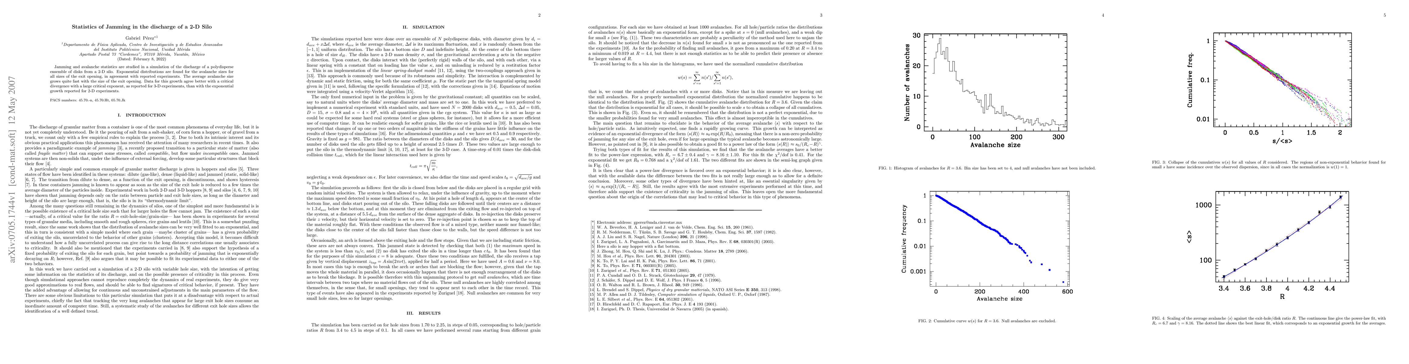 Researchers studied jamming in a 2D silo using simulations, finding that avalanche sizes follow exponential distributions for exit openings of varying sizes. They also discovered an unexpected critical divergence in average avalanche size with increasing exit opening size.