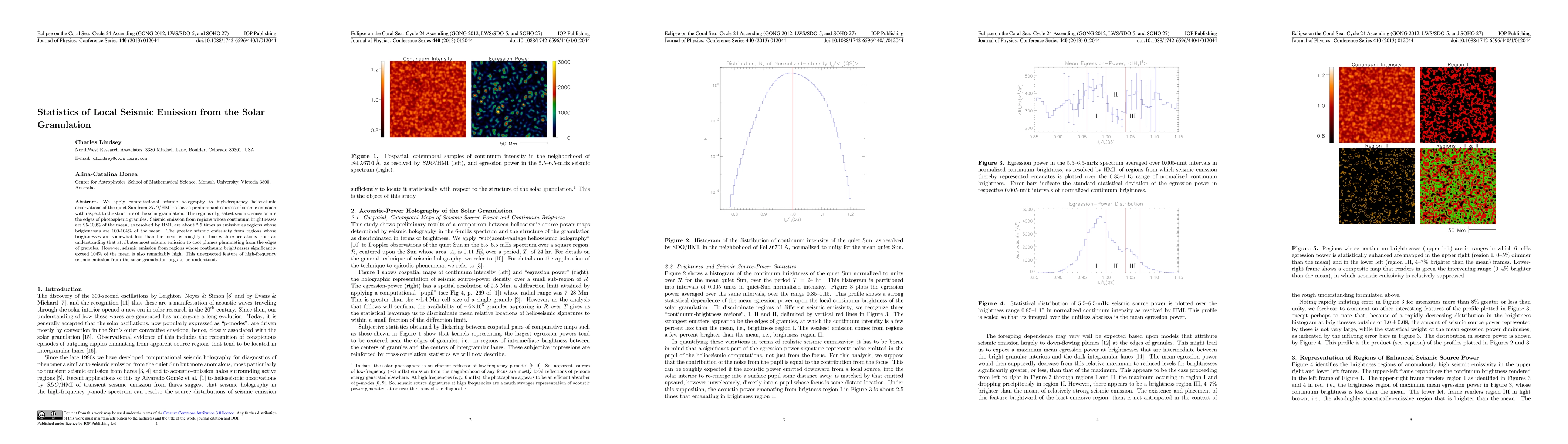 We apply computational seismic holography to high-frequency helioseismic observations of the quiet Sun from SDO/HMI to locate predominant sources of seismic emission with respect to the structure of the solar granulation. The regions of greatest seismic emission are the edges of photospheric granules. Seismic emission from regions whose continuum brightnesses are 95-100% of the mean, as resolved by HMI, are about 2.5 times as emissive as regions whose brightnesses are 100-104% of the mean. The greater seismic emissivity from regions whose brightnesses are somewhat less than the mean is roughly in line with expectations from an understanding that attributes most seismic emission to cool plumes plummeting from the edges of granules. However, seismic emission from regions whose continuum brightnesses significantly exceed 104% of the mean is also remarkably high. This unexpected feature of high-frequency seismic emission from the solar granulation begs to be understood.