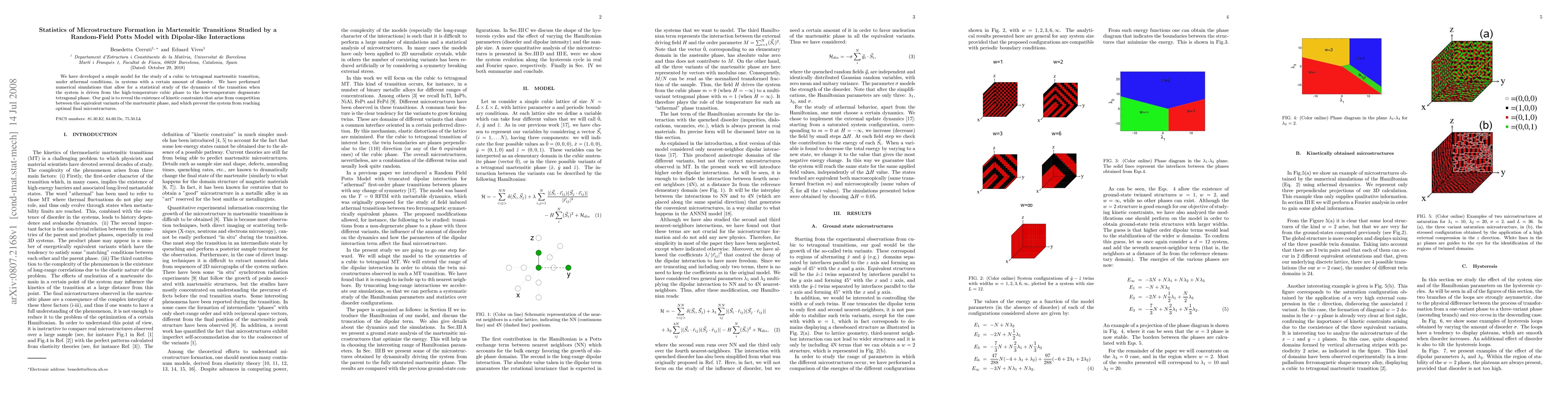 We have developed a simple model for the study of a cubic to tetragonal martensitic transition, under athermal conditions, in systems with a certain amount of disorder. We have performed numerical simulations that allow for a statistical study of the dynamics of the transition when the system is driven from the high-temperature cubic phase to the low-temperature degenerate tetragonal phase. Our goal is to reveal the existence of kinetic constraints that arise from competition between the equivalent variants of the martensitic phase, and which prevent the system from reaching optimal final microstructures.