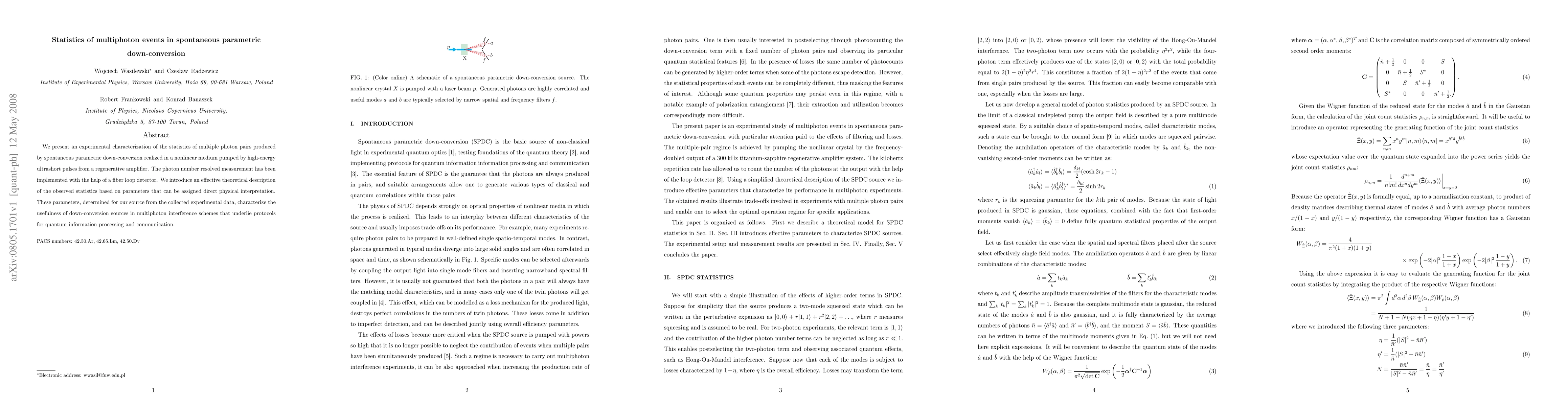 This paper experimentally characterizes the statistics of multiple photon pairs generated by spontaneous parametric down-conversion in a nonlinear medium, using a fiber loop detector. It introduces a theoretical framework for interpreting these statistics, which is crucial for evaluating the utility of down-conversion sources in multiphoton interference protocols for quantum information processing.