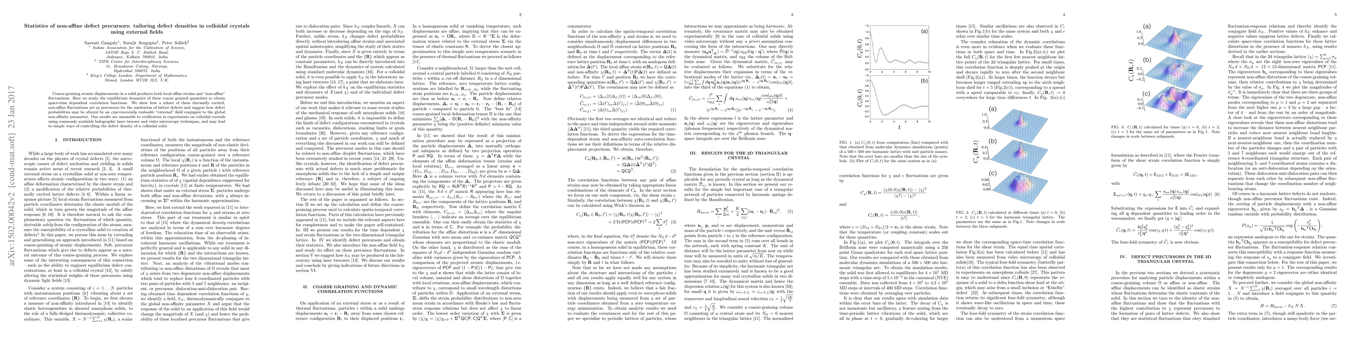 Coarse-graining atomic displacements in a solid produces both local affine strains and "non-affine" fluctuations. Here we study the equilibrium dynamics of these coarse grained quantities to obtain space-time dependent correlation functions. We show how a subset of these thermally excited, non-affine fluctuations act as precursors for the nucleation of lattice defects and suggest how defect probabilities may be altered by an {\it experimentally realisable} "external" field conjugate to the global non-affinity parameter. Our results are amenable to verification in experiments on colloidal crystals using commonly available holographic laser tweezer and video microscopy techniques, and may lead to simple ways of controlling the defect density of a colloidal solid.