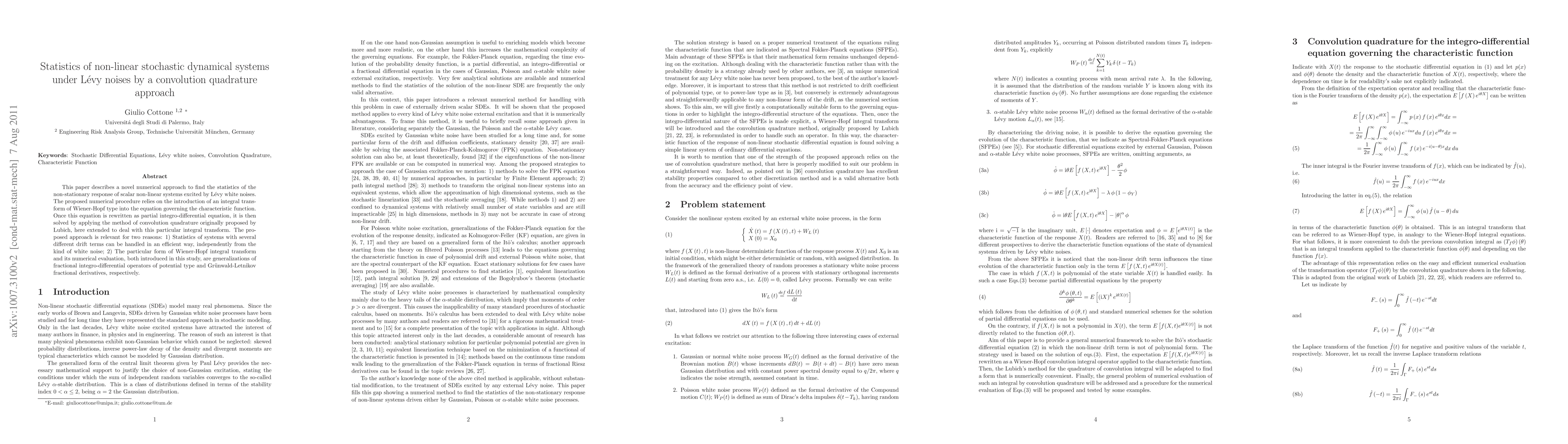 This paper describes a novel numerical approach to find the statistics of the non-stationary response of scalar non-linear systems excited by L\'evy white noises. The proposed numerical procedure relies on the introduction of an integral transform of Wiener-Hopf type into the equation governing the characteristic function. Once this equation is rewritten as partial integro-differential equation, it is then solved by applying the method of convolution quadrature originally proposed by Lubich, here extended to deal with this particular integral transform. The proposed approach is relevant for two reasons: 1) Statistics of systems with several different drift terms can be handled in an efficient way, independently from the kind of white noise; 2) The particular form of Wiener-Hopf integral transform and its numerical evaluation, both introduced in this study, are generalizations of fractional integro-differential operators of potential type and Gr\"unwald-Letnikov fractional derivatives, respectively.