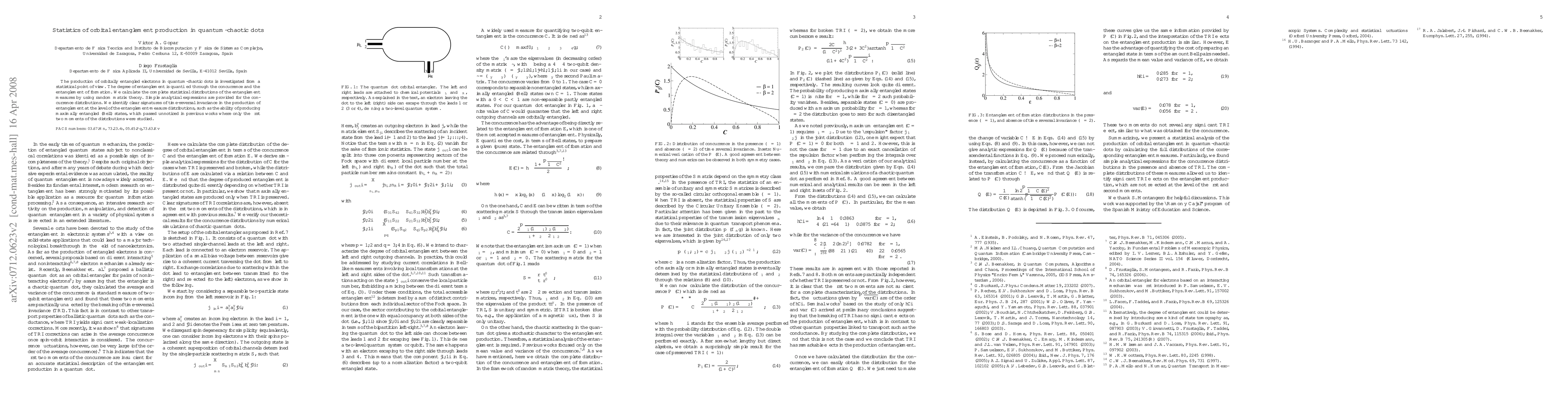 This paper investigates the statistical properties of orbital entanglement in quantum-chaotic dots, quantifying it via concurrence and entanglement of formation. Using random matrix theory, it reveals signatures of time-reversal invariance in the production of maximally entangled states, previously unnoticed due to prior focus on only the first two moments of the distributions.