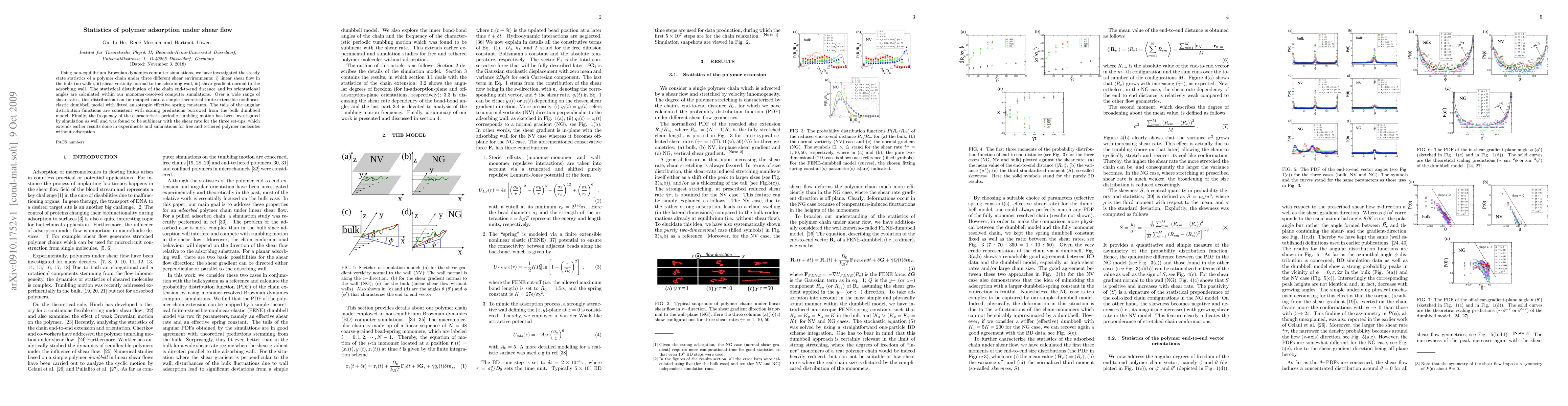 The work extends previous research by incorporating adsorption effects and comparing results with a dumbbell model, revealing new insights into polymer behavior under shear flow with adsorption.