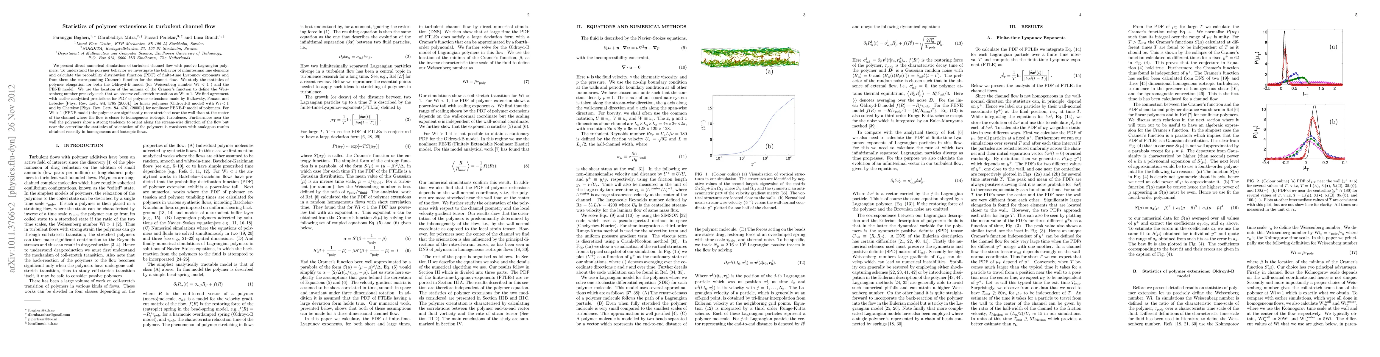 This study uses direct numerical simulations to analyze the behavior of polymers in turbulent channel flow, focusing on the statistics of polymer extensions. It finds that for $\Wi<1$, polymer behavior aligns with earlier analytical predictions, while for $\Wi>1$, polymers are significantly more stretched near the channel walls, showing a strong orientation along the stream-wise direction.