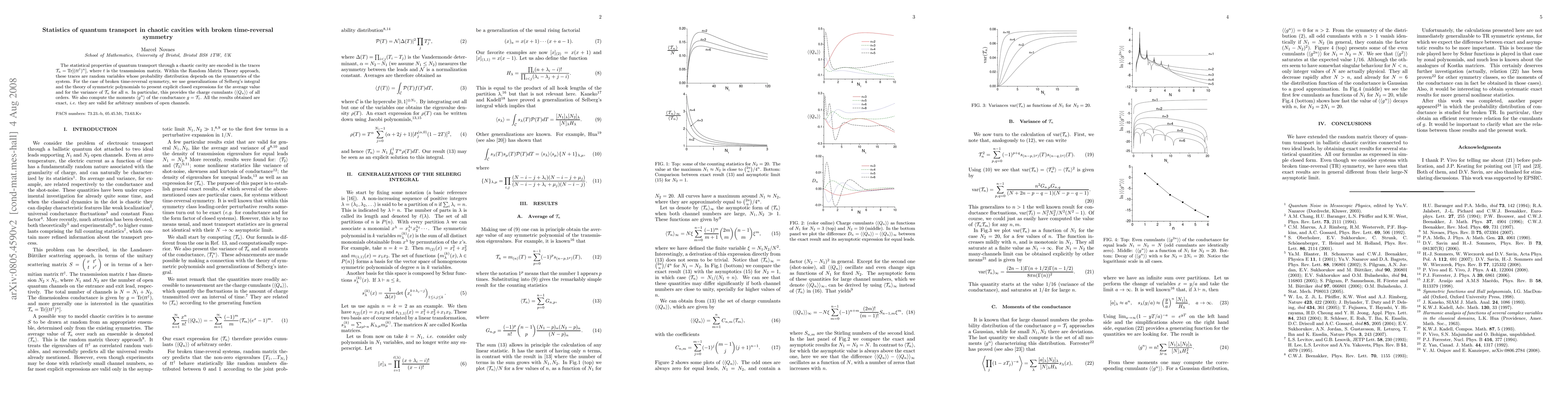 This paper investigates the statistical properties of quantum transport in chaotic cavities with broken time-reversal symmetry using Random Matrix Theory. It provides explicit closed-form expressions for the average value, variance, and charge cumulants of transmission traces for all orders, as well as moments of conductance, valid for any number of open channels.