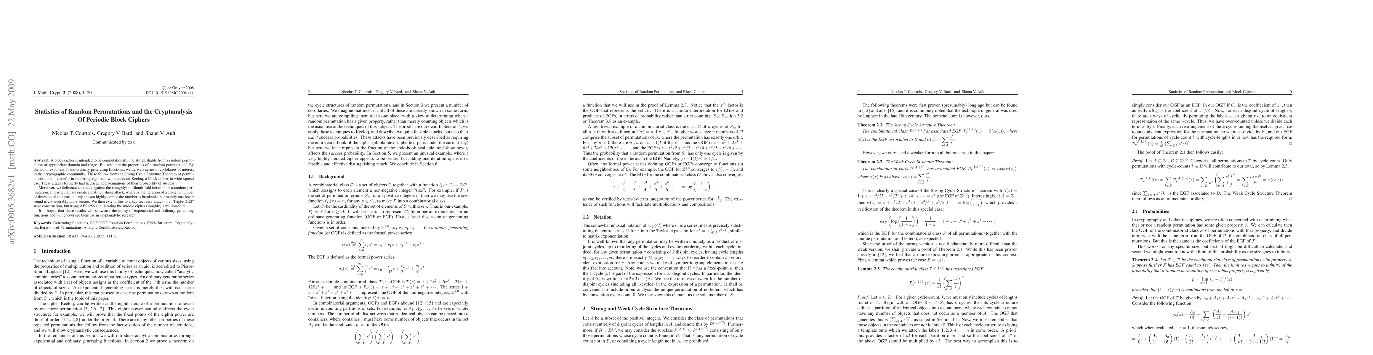 A block cipher is intended to be computationally indistinguishable from a random permutation of appropriate domain and range. But what are the properties of a random permutation? By the aid of exponential and ordinary generating functions, we derive a series of collolaries of interest to the cryptographic community. These follow from the Strong Cycle Structure Theorem of permutations, and are useful in rendering rigorous two attacks on Keeloq, a block cipher in wide-spread use. These attacks formerly had heuristic approximations of their probability of success. Moreover, we delineate an attack against the (roughly) millionth-fold iteration of a random permutation. In particular, we create a distinguishing attack, whereby the iteration of a cipher a number of times equal to a particularly chosen highly-composite number is breakable, but merely one fewer round is considerably more secure. We then extend this to a key-recovery attack in a "Triple-DES" style construction, but using AES-256 and iterating the middle cipher (roughly) a million-fold. It is hoped that these results will showcase the utility of exponential and ordinary generating functions and will encourage their use in cryptanalytic research.