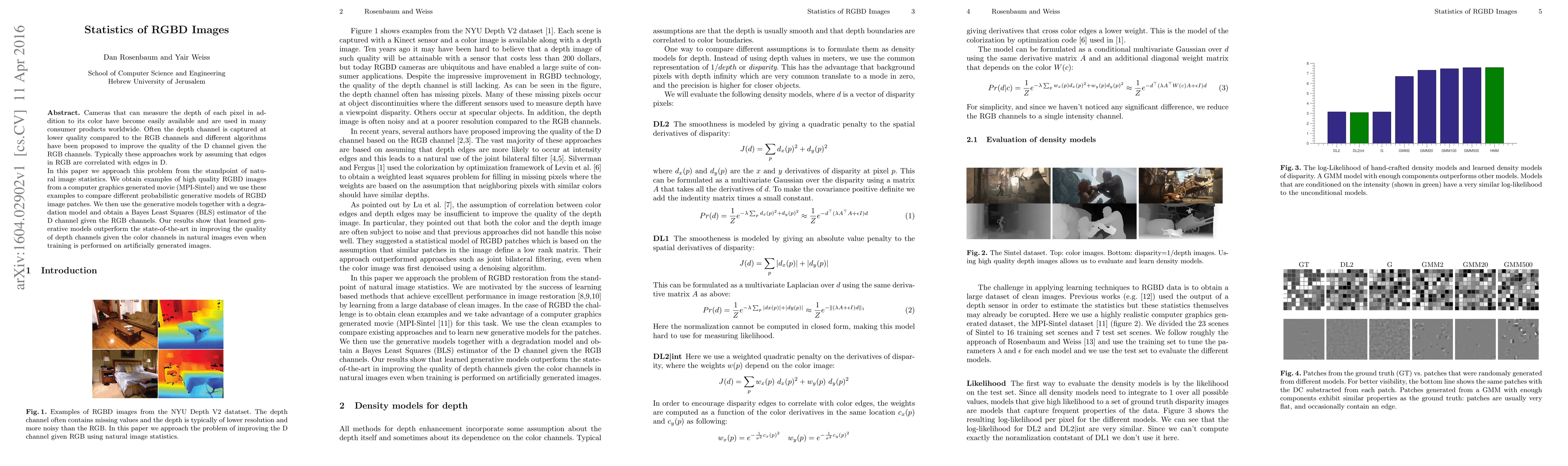 Researchers developed a method to improve depth channel quality in RGBD images using generative models and Bayes Least Squares estimation, outperforming state-of-the-art methods.