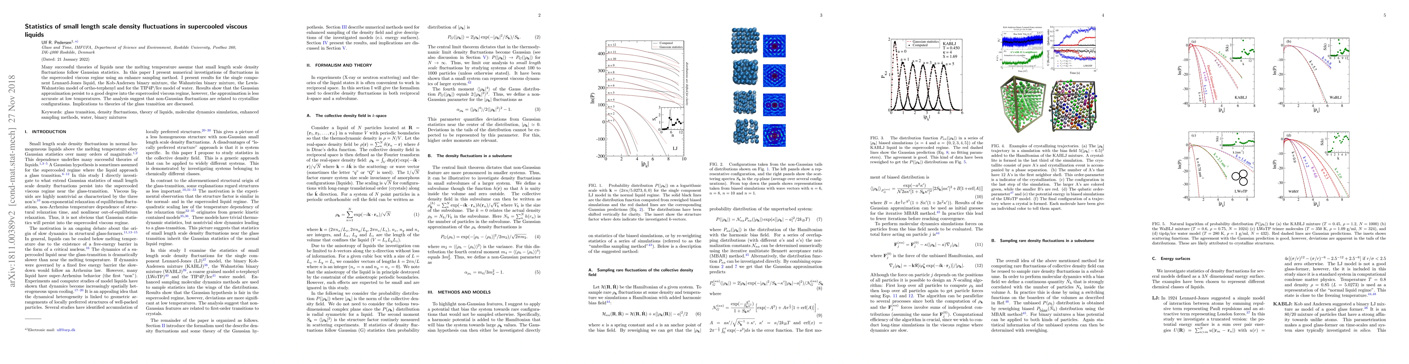 This paper investigates small length scale density fluctuations in supercooled viscous liquids using enhanced sampling methods, finding that Gaussian statistics largely hold but become less accurate at low temperatures, with non-Gaussian fluctuations linked to crystalline configurations, thus impacting theories of the glass transition.