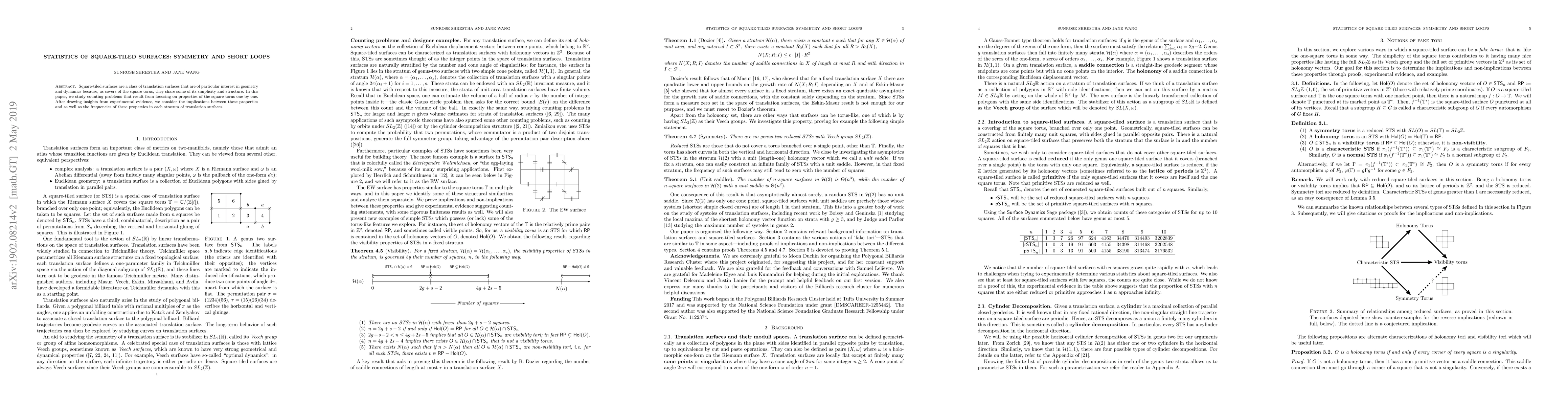 This paper investigates counting problems of square-tiled surfaces, focusing on their symmetry and short loops, and examines the implications of these properties across different strata of translation surfaces, drawing insights from experimental data.