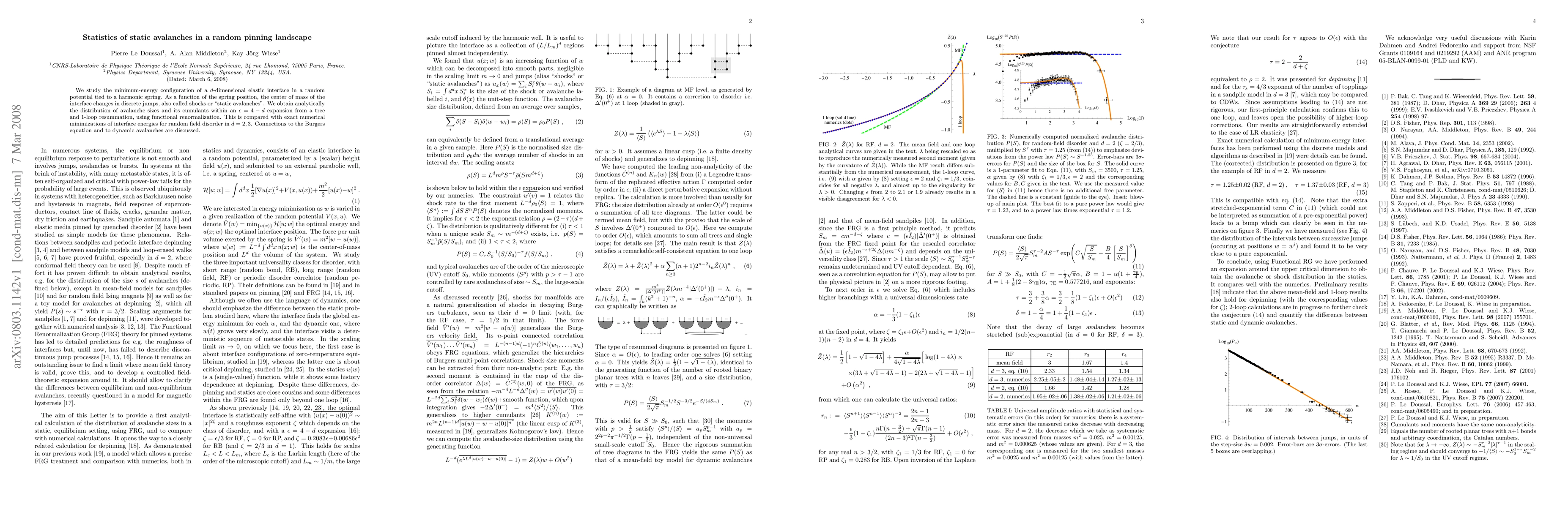This research paper studies static avalanches in a random pinning landscape using functional renormalization and compares their distribution with exact numerical minimizations. It sheds light on the connection to the Burgers equation and dynamic avalanches.