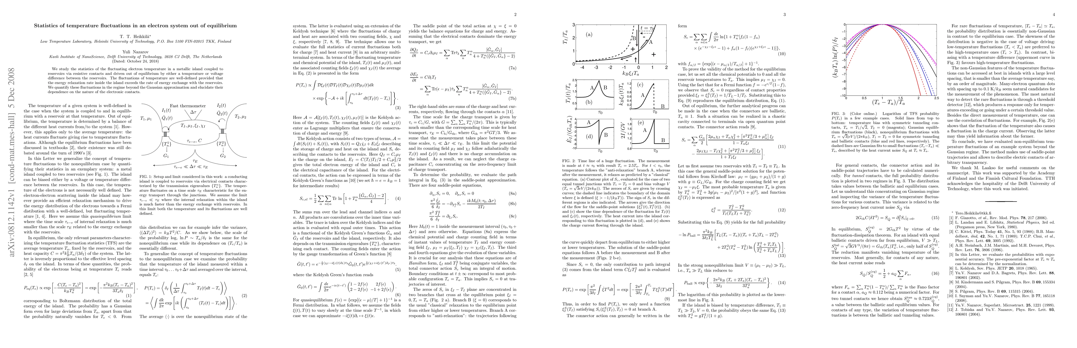 Researchers studied temperature fluctuations in an electron system driven out of equilibrium by a reservoir difference, finding they depend on contact nature and energy rates.