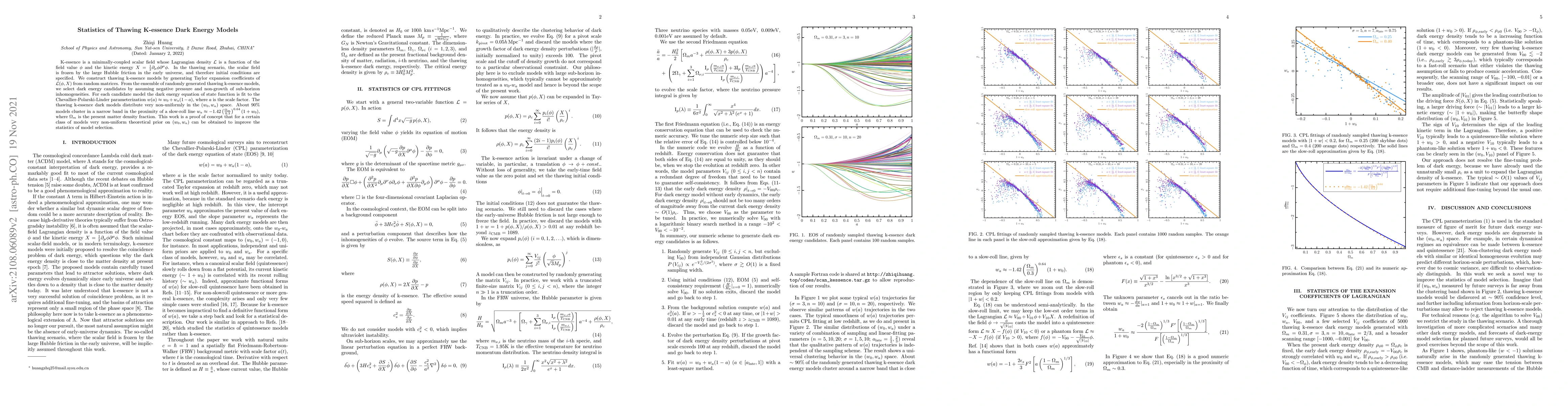 A study on K-essence dark energy models found that 90% of thawing k-essence models cluster in a narrow band around a specific parameterization of the equation of state, suggesting a non-uniform theoretical prior can be used to improve model selection statistics.