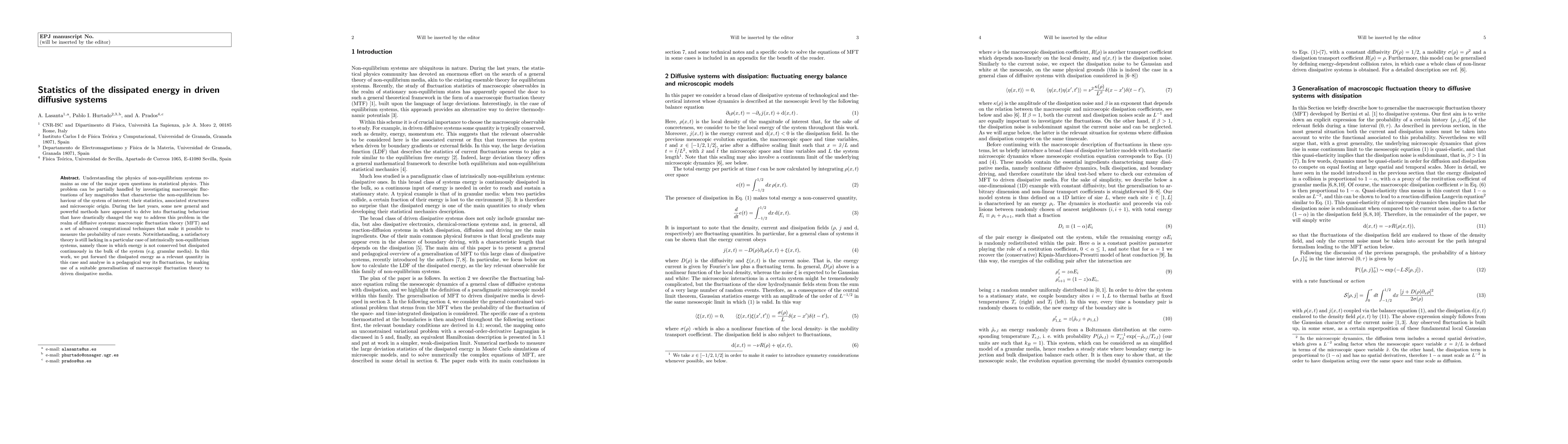 This paper investigates the statistics of dissipated energy in non-equilibrium driven diffusive systems using macroscopic fluctuation theory and advanced computational techniques. It focuses on systems where energy is continuously dissipated, such as granular media, and provides a pedagogical analysis of the fluctuations of this energy.