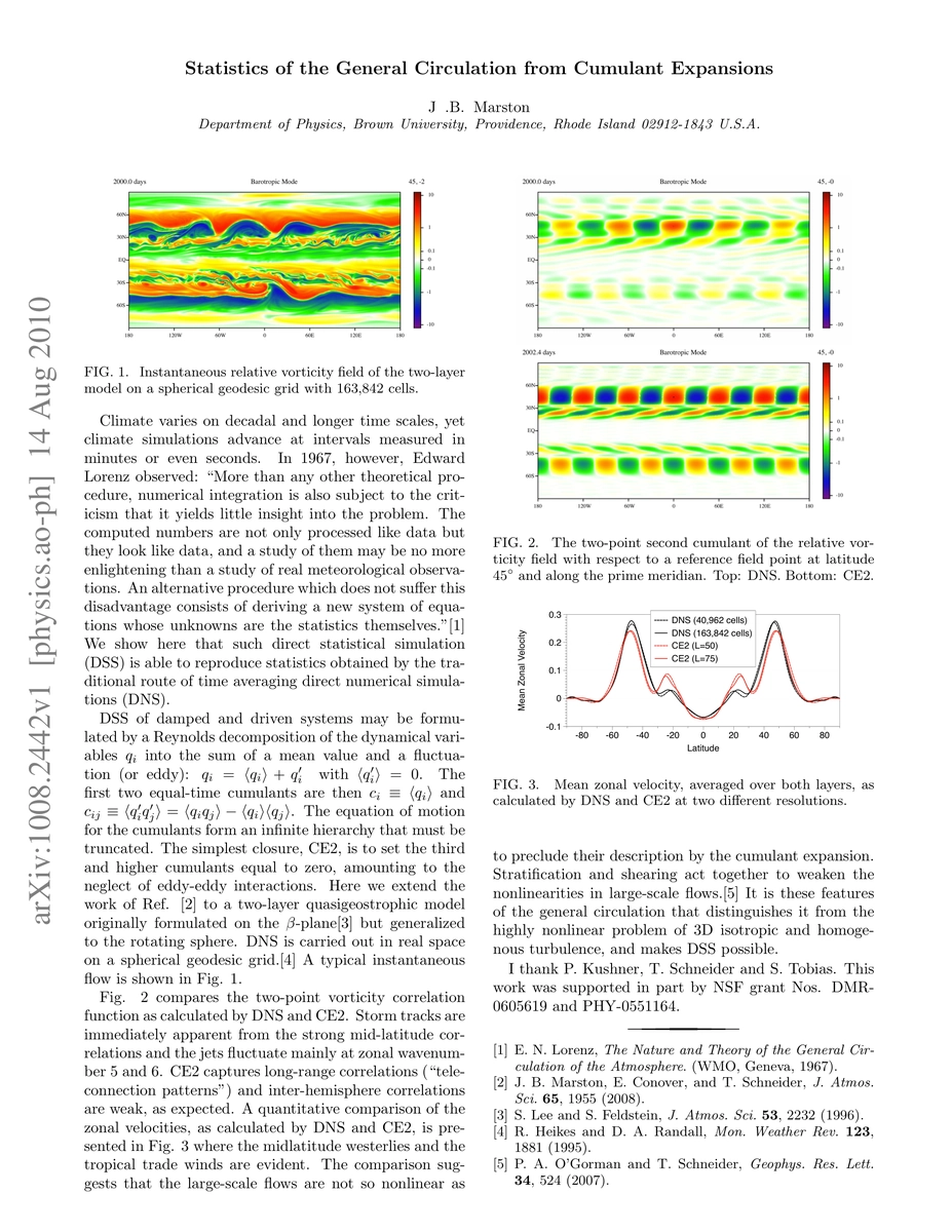This paper explores the statistical description of large-scale atmospheric flows using cumulant expansions, extending previous work through a two-layer baroclinic model. The study finds that the fixed point of the cumulant expansion accurately represents the steady state of the model, with equal-time statistics matching those from direct numerical simulations.