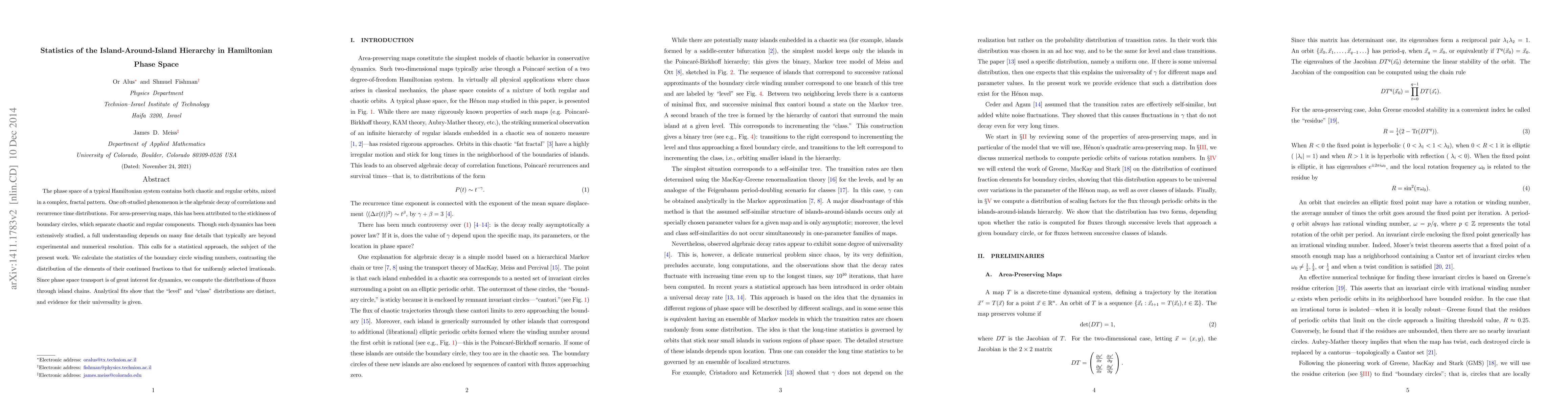 The phase space of a typical Hamiltonian system contains both chaotic and regular orbits, mixed in a complex, fractal pattern. One oft-studied phenomenon is the algebraic decay of correlations and recurrence time distributions. For area-preserving maps, this has been attributed to the stickiness of boundary circles, which separate chaotic and regular components. Though such dynamics has been extensively studied, a full understanding depends on many fine details that typically are beyond experimental and numerical resolution. This calls for a statistical approach, the subject of the present work. We calculate the statistics of the boundary circle winding numbers, contrasting the distribution of the elements of their continued fractions to that for uniformly selected irrationals. Since phase space transport is of great interest for dynamics, we compute the distributions of fluxes through island chains. Analytical fits show that the "level" and "class" distributions are distinct, and evidence for their universality is given.