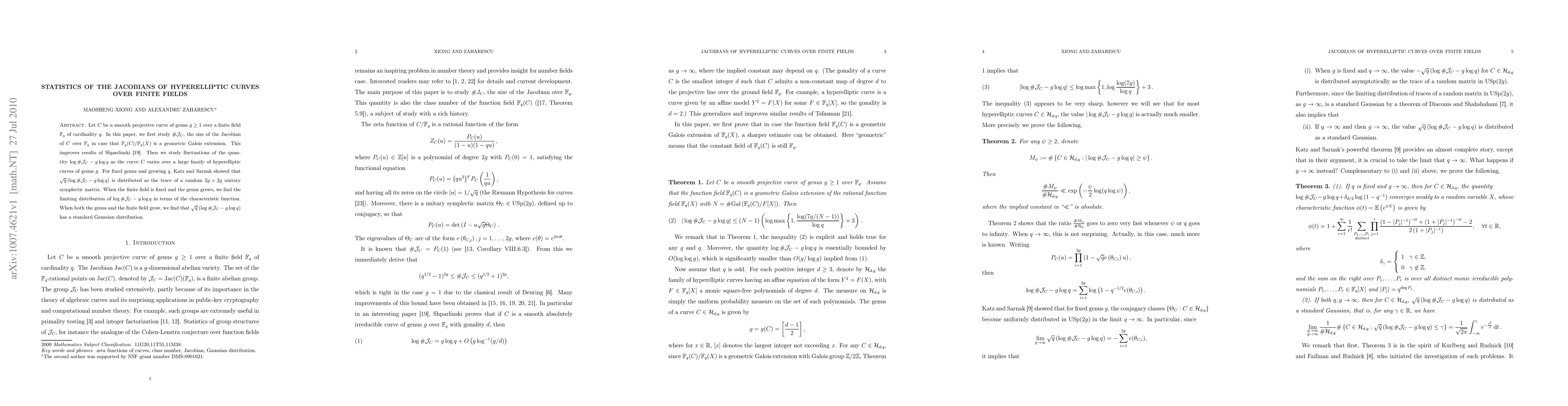 This paper investigates the size and fluctuations of the Jacobian of hyperelliptic curves over finite fields, improving upon previous results. It finds that under certain conditions, the fluctuations follow distributions related to random matrix theory, with a standard Gaussian limit when both the field size and genus grow.