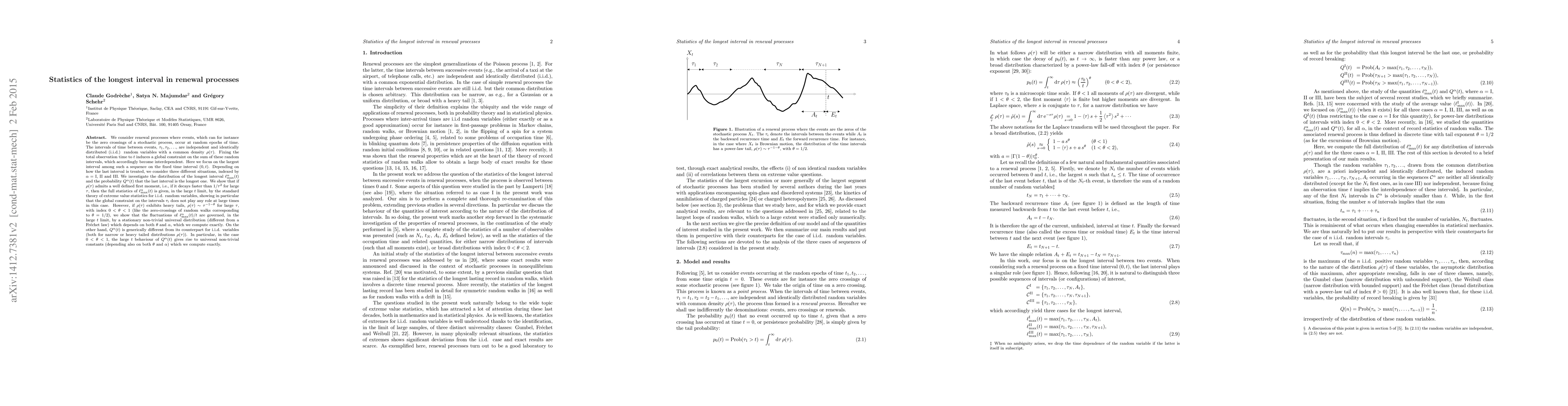 The paper investigates how the distribution of the longest interval in a renewal process changes with the decay rate of its density function, finding that it follows extreme value statistics for slow decays and a universal distribution for heavy-tailed distributions.