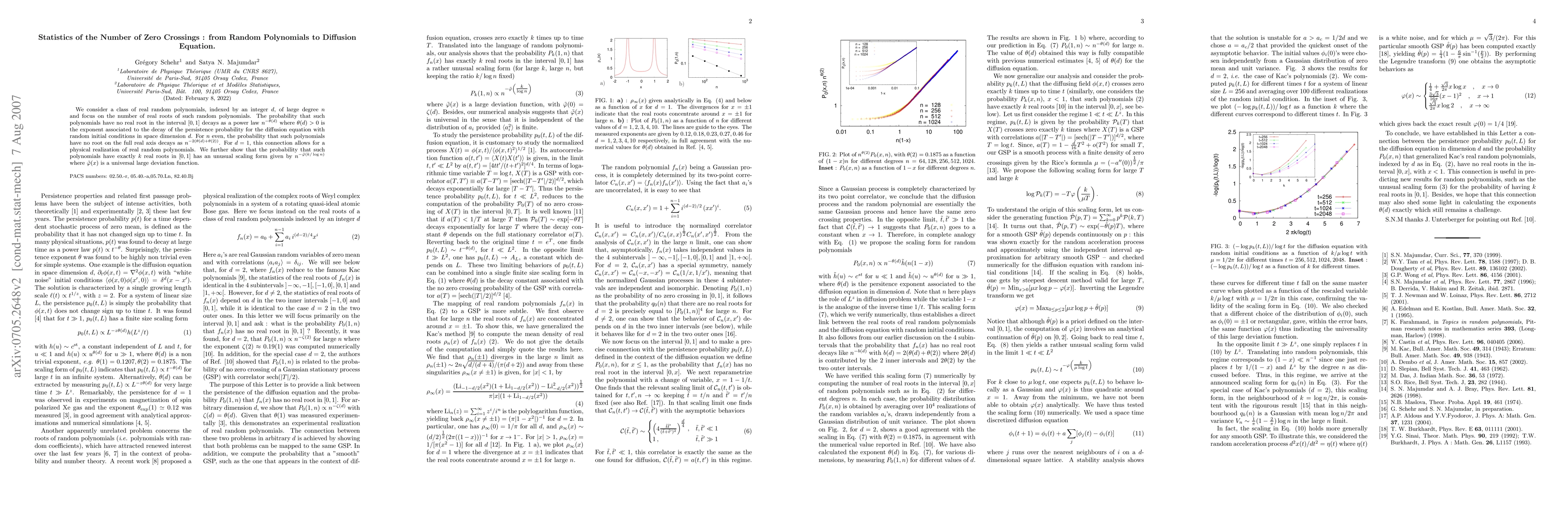 We consider a class of real random polynomials, indexed by an integer d, of large degree n and focus on the number of real roots of such random polynomials. The probability that such polynomials have no real root in the interval [0,1] decays as a power law n^{-\theta(d)} where \theta(d)>0 is the exponent associated to the decay of the persistence probability for the diffusion equation with random initial conditions in space dimension d. For n even, the probability that such polynomials have no root on the full real axis decays as n^{-2(\theta(d) + \theta(2))}. For d=1, this connection allows for a physical realization of real random polynomials. We further show that the probability that such polynomials have exactly k real roots in [0,1] has an unusual scaling form given by n^{-\tilde \phi(k/\log n)} where \tilde \phi(x) is a universal large deviation function.