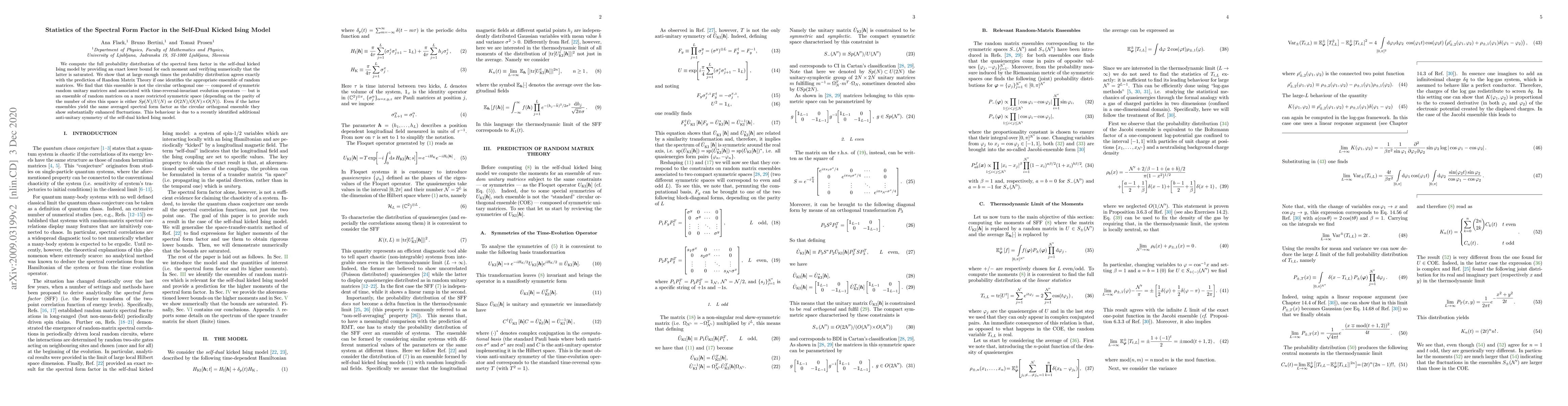 This paper computes the probability distribution of the spectral form factor in the self-dual kicked Ising model, showing that it aligns with Random Matrix Theory predictions, but identifies a different ensemble of random matrices than the circular orthogonal ensemble, leading to enhanced fluctuations due to an additional anti-unitary symmetry.