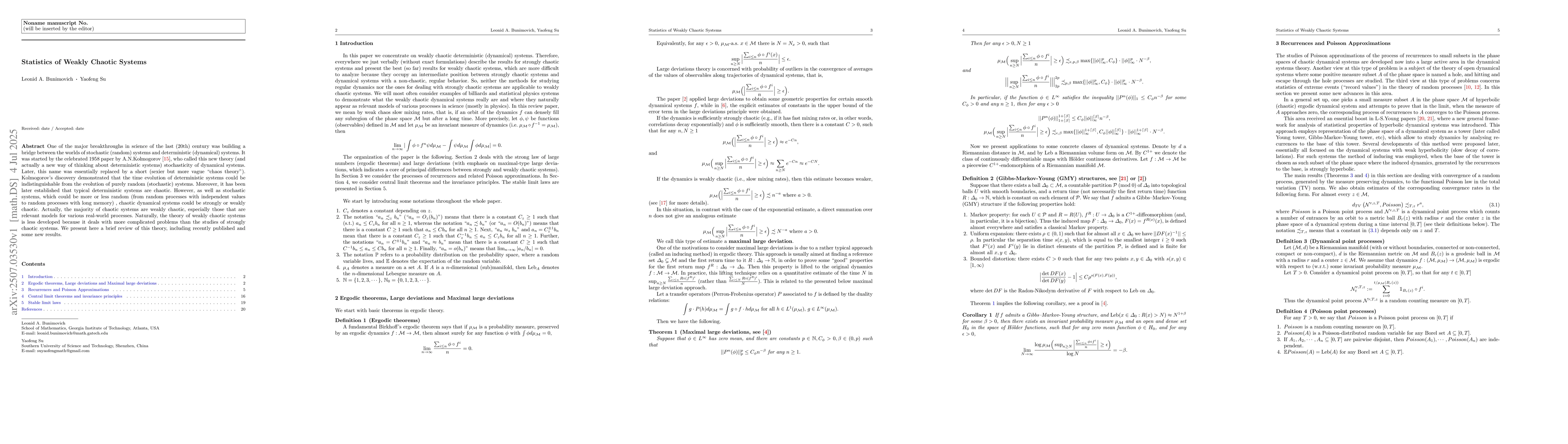 One of the major breakthroughs in science of the last (20th) century was building a bridge between the worlds of stochastic (random) systems and deterministic (dynamical) systems. It was started by the celebrated 1958 paper by A.N.Kolmogorov \cite{Kolmo}, who called this new theory (and actually a new way of thinking about deterministic systems) stochasticity of dynamical systems. Later, this name was essentially replaced by a short (sexier but more vague ``chaos theory"). Kolmogorov's discovery demonstrated that the time evolution of deterministic systems could be indistinguishable from the evolution of purely random (stochastic) systems. Moreover, it has been later established that typical deterministic systems are chaotic. However, as well as stochastic systems, which could be more or less random (from random processes with independent values to random processes with long memory) , chaotic dynamical systems could be strongly or weakly chaotic. Actually, the majority of chaotic systems are weakly chaotic, especially those that are relevant models for various real-world processes. Naturally, the theory of weakly chaotic systems is less developed because it deals with more complicated problems than the studies of strongly chaotic systems. We present here a brief review of this theory, including recently published and some new results.