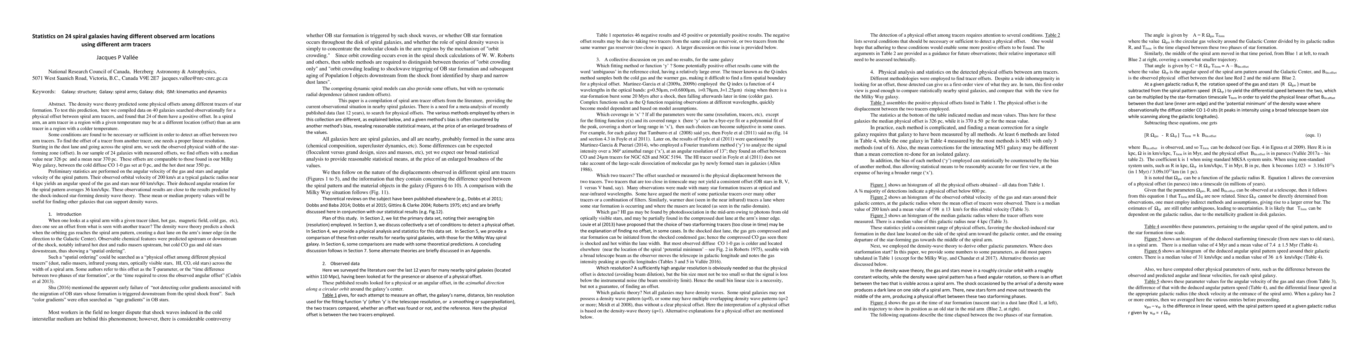 The density wave theory predicted some physical offsets among different tracers of star formation. To test this prediction, here we compiled data on 40 galaxies searched observationally for a physical offset between spiral arm tracers, and found that 24 of them have a positive offset. In a spiral arm, an arm tracer in a region with a given temperature may be at a different location (offset) than an arm tracer in a region with a colder temperature. Some conditions are found to be necessary or sufficient in order to detect an offset between two arm tracers. To find the offset of a tracer from another tracer, one needs a proper linear resolution. Starting in the dust lane and going across the spiral arm, we seek the observed physical width of the star-forming zone (offset). In our sample of 24 galaxies with measured offsets, we find offsets with a median value near 326 pc and a mean near 370 pc. These offsets are comparable to those found in our Milky Way galaxy, between the cold diffuse CO 1-0 gas set at 0 pc, and the hot dust near 350 pc. Preliminary statistics are performed on the angular velocity of the gas and stars and angular velocity of the spiral pattern. Their observed orbital velocity of 200 km/s at a typical galactic radius near 4 kpc yields an angular speed of the gas and stars near 60 km/s/kpc. Their deduced angular rotation for the spiral pattern averages 36 km/s/kpc. These observational results are close to the results predicted by the shock-induced star-forming density wave theory. These mean or median property values will be useful for finding other galaxies that can support density waves.