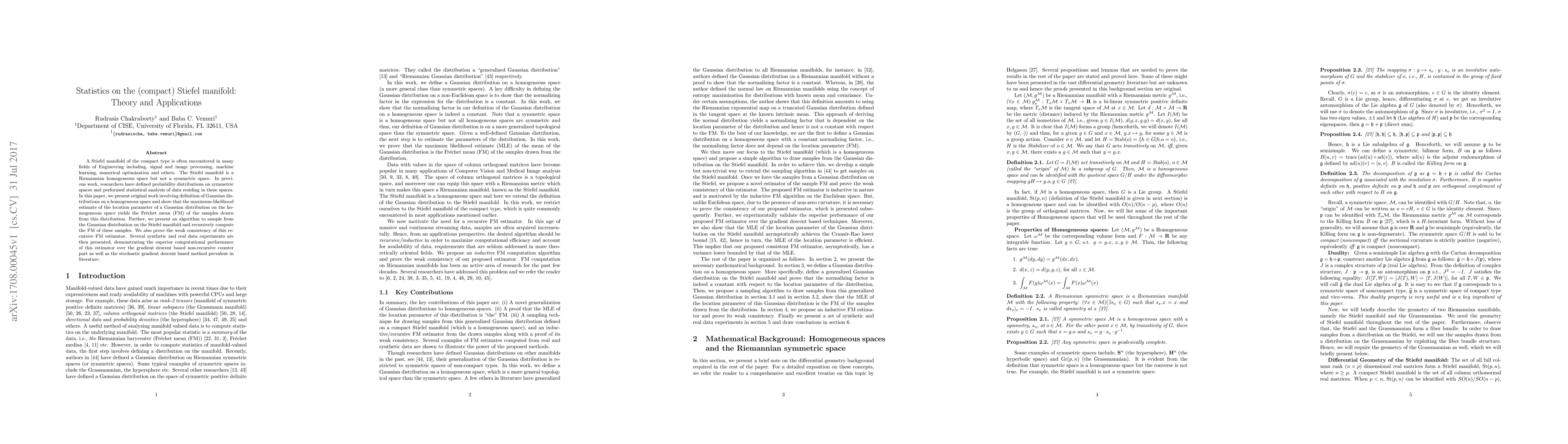 This paper defines Gaussian distributions on the compact Stiefel manifold and demonstrates that the maximum-likelihood estimate yields the Fréchet mean. It presents an algorithm for sampling and recursively computing the Fréchet mean, proving its weak consistency, and shows superior computational performance over existing methods through experiments.