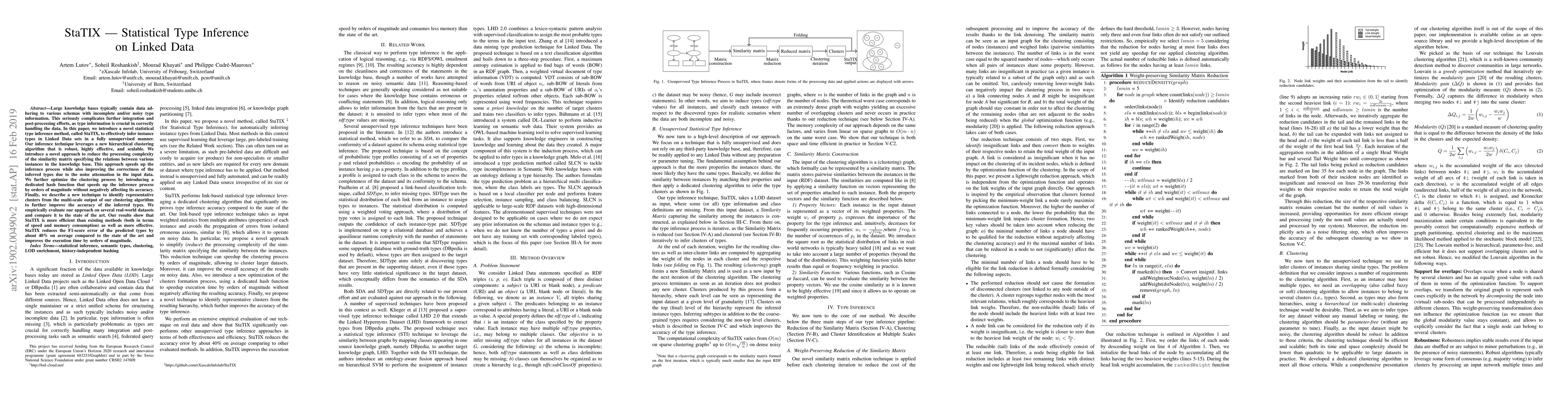 A new statistical method called StaTIX improves type inference in Linked Data sets by leveraging a hierarchical clustering algorithm with noise attenuation, resulting in faster and more accurate results compared to existing methods.