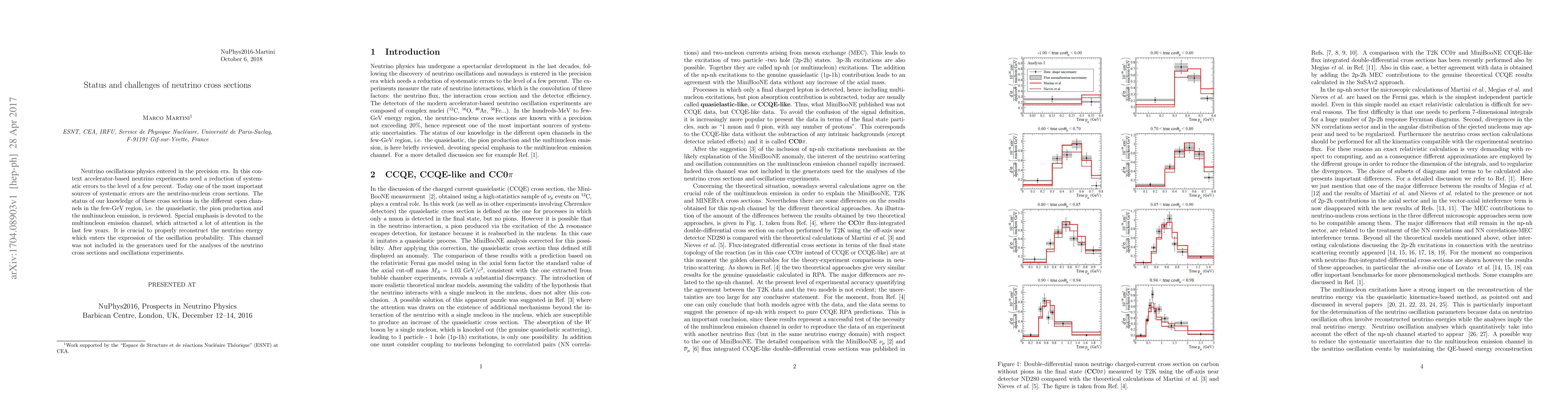Neutrino oscillations physics entered in the precision era. In this context accelerator-based neutrino experiments need a reduction of systematic errors to the level of a few percent. Today one of the most important sources of systematic errors are the neutrino-nucleus cross sections. The status of our knowledge of these cross sections in the different open channels in the few-GeV region, i.e. the quasielastic, the pion production and the multinucleon emission, is reviewed. Special emphasis is devoted to the multinucleon emission channel, which attracted a lot of attention in the last few years. It is crucial to properly reconstruct the neutrino energy which enters the expression of the oscillation probability. This channel was not included in the generators used for the analyses of the neutrino cross sections and oscillations experiments.