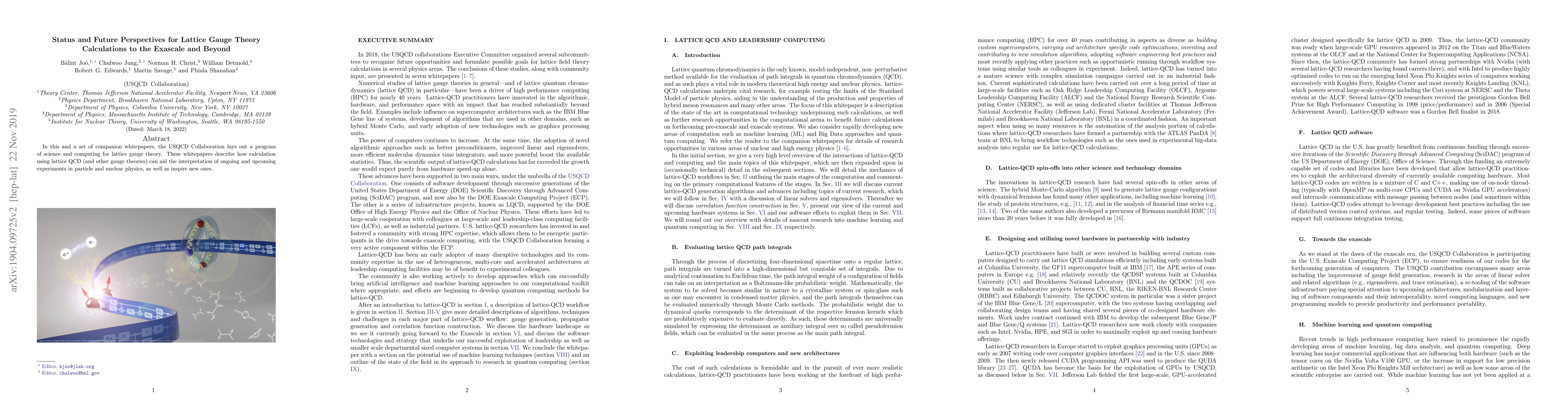 In this and a set of companion whitepapers, the USQCD Collaboration lays out a program of science and computing for lattice gauge theory. These whitepapers describe how calculation using lattice QCD (and other gauge theories) can aid the interpretation of ongoing and upcoming experiments in particle and nuclear physics, as well as inspire new ones.