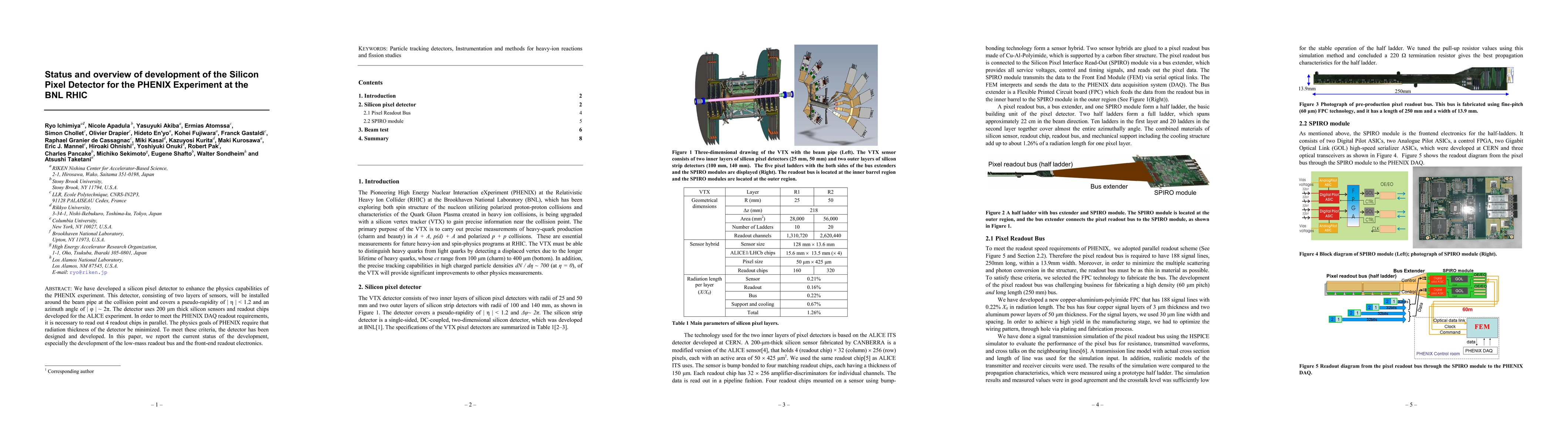 This paper details the development of a silicon pixel detector for the PHENIX experiment at BNL RHIC, designed to enhance physics capabilities. The detector features two layers of 200 um thick silicon sensors and is optimized for minimal radiation thickness, with a focus on the development of low-mass readout bus and front-end electronics.