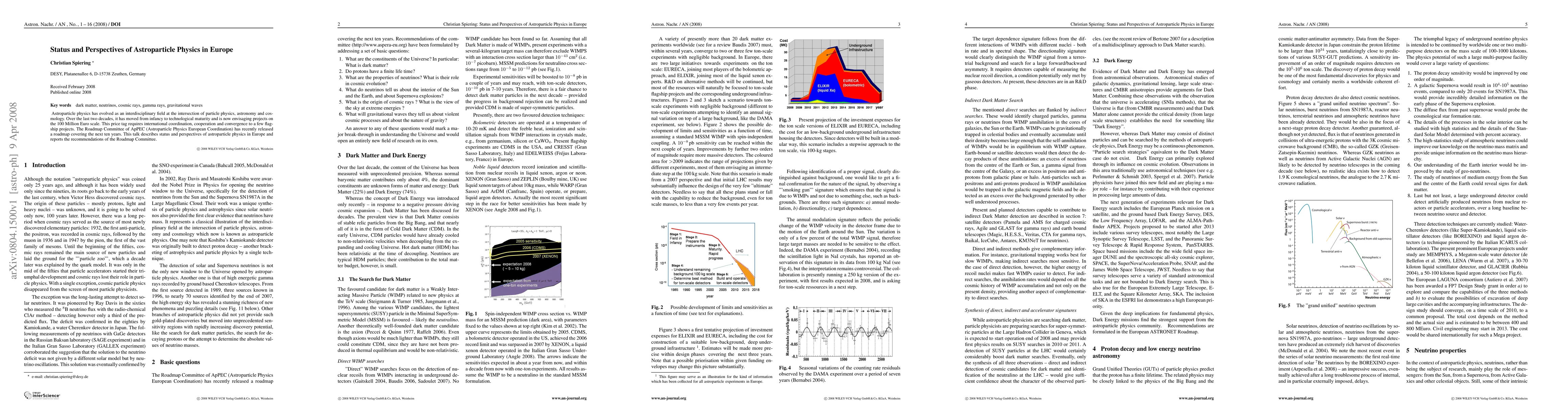 Astroparticle physics has evolved as an interdisciplinary field at the intersection of particle physics, astronomy and cosmology. Over the last two decades, it has moved from infancy to technological maturity and is now envisaging projects on the 100 Million Euro scale. This price tag requires international coordination, cooperation and convergence to a few flagship projects. The Roadmap Committee of ApPEC (Astroparticle Physics European Coordination) has recently released a roadmap covering the next ten years. This talk describes status and perspectives of astroparticle physics in Europe and reports the recommendations of the Roadmap Committee.