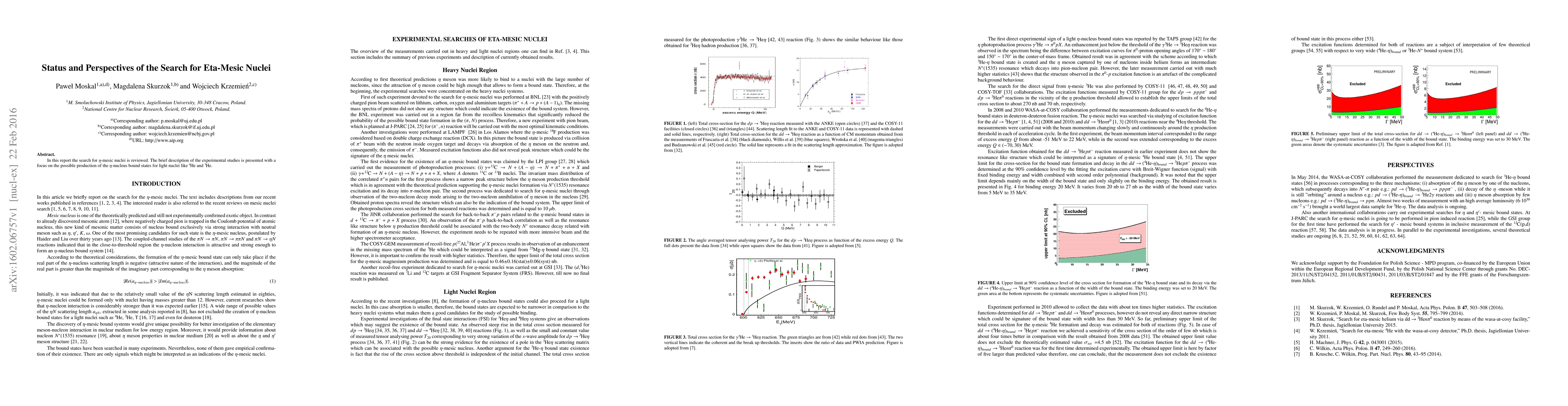 Researchers reviewed experimental studies on eta-mesic nuclei, exploring their production in light nuclei like helium-4 and helium-3. The search for these nucleus bound states continues, with implications for understanding nuclear physics and the fundamental forces of nature.