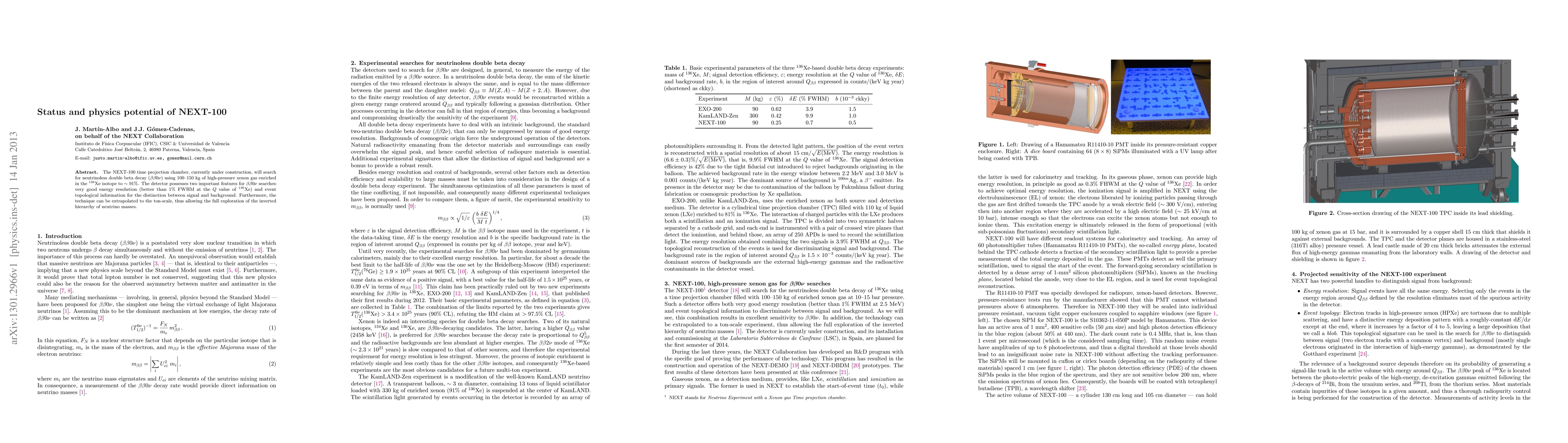 The NEXT-100 time projection chamber will search for neutrinoless double beta decay using 100-150 kg of high-pressure xenon gas, offering improved energy resolution and event topological information.