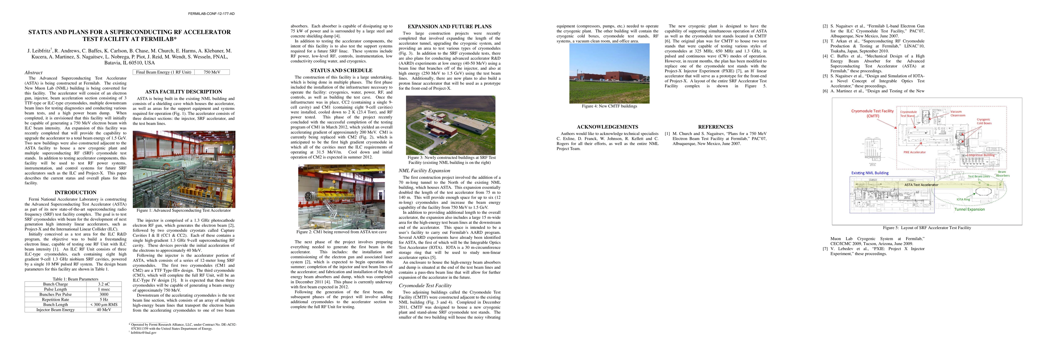 The Advanced Superconducting Test Accelerator (ASTA) at Fermilab is being constructed to test superconducting RF components and diagnostics for future accelerators like ILC and Project-X. The facility will initially generate a 750-MeV electron beam and has plans for expansion to 1.5-GeV.