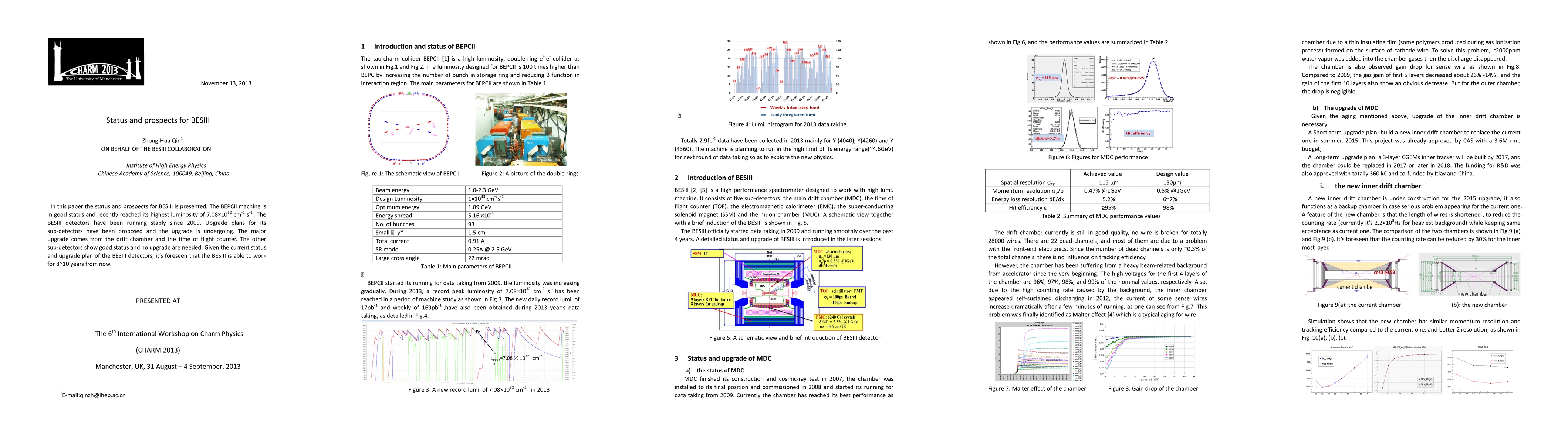 In this paper the status and prospects for BESIII is presented.The BEPCII machine is in good status and recently reached its highest luminosity of 7.08*10^32cm^-2s^-1. The BESIII detectors have been running stably since 2009. Upgrade plans for its sub-detectors have been proposed and the upgrade is undergoing. The major upgrade comes from the drift chamber and the time of of flight counter. The other sub-detectors show good status and no upgrade are needed. Given the current status and upgrade plan of the BESIII detectors, it's foreseen that the BESIII is able to work for 8 to 10 years from now.